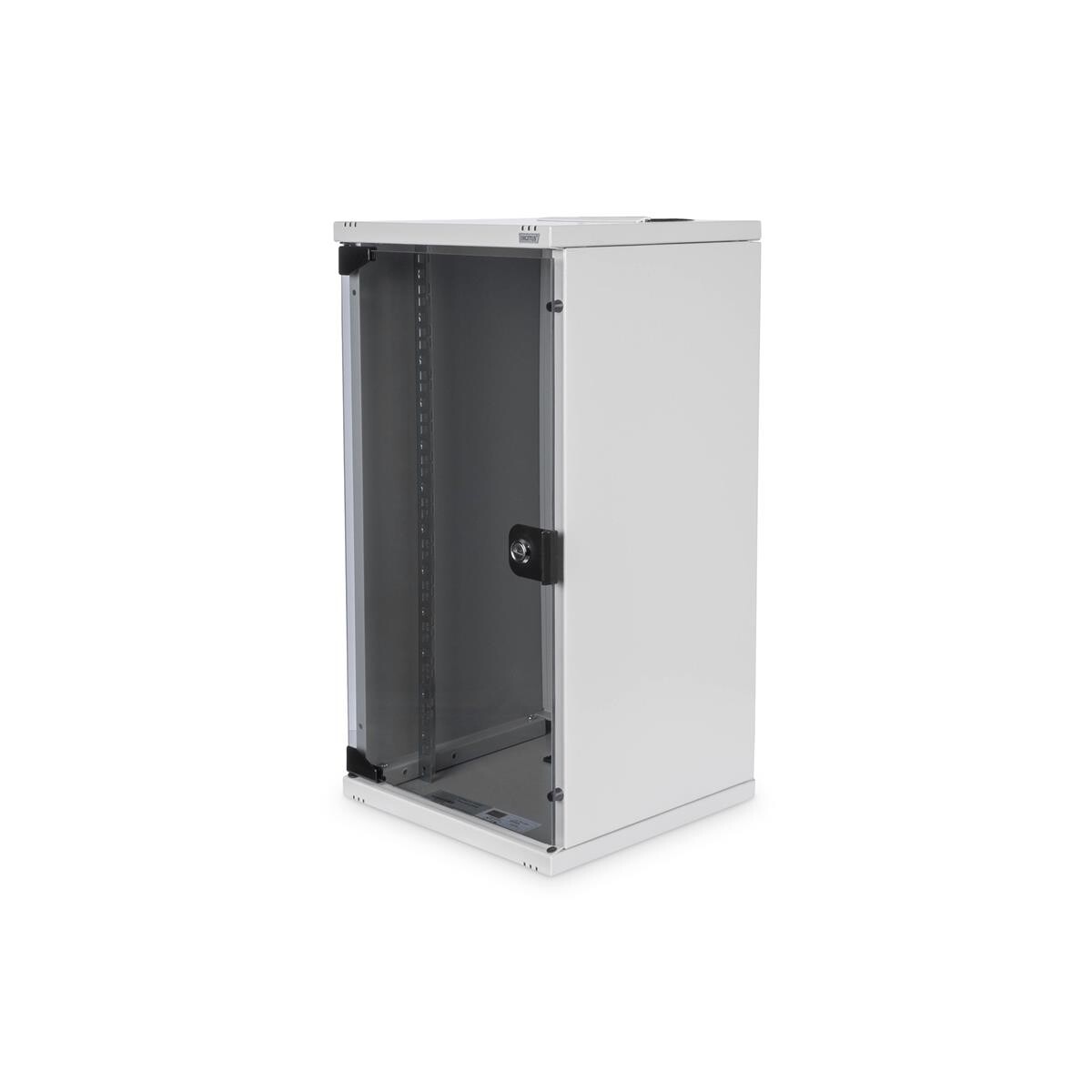 Eine abschließbare Glas-Tür schützt das Büro- oder Heimnetzwerk vor unberechtigtem Zugriff, ermöglicht dennoch die Sichtkontrolle von Internet-Router, NAS-Server oder Netzwerk-Switch