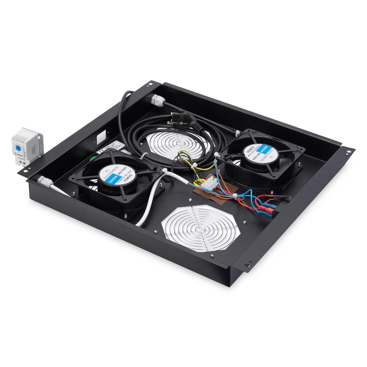 DIGITUS DN-19-FAN-2-B-N - Dachlüftereinheit für Unique Netzwerk & Dynamic 2 Lüfter, Thermostat, Schalter, Schwarz(RAL 9005)