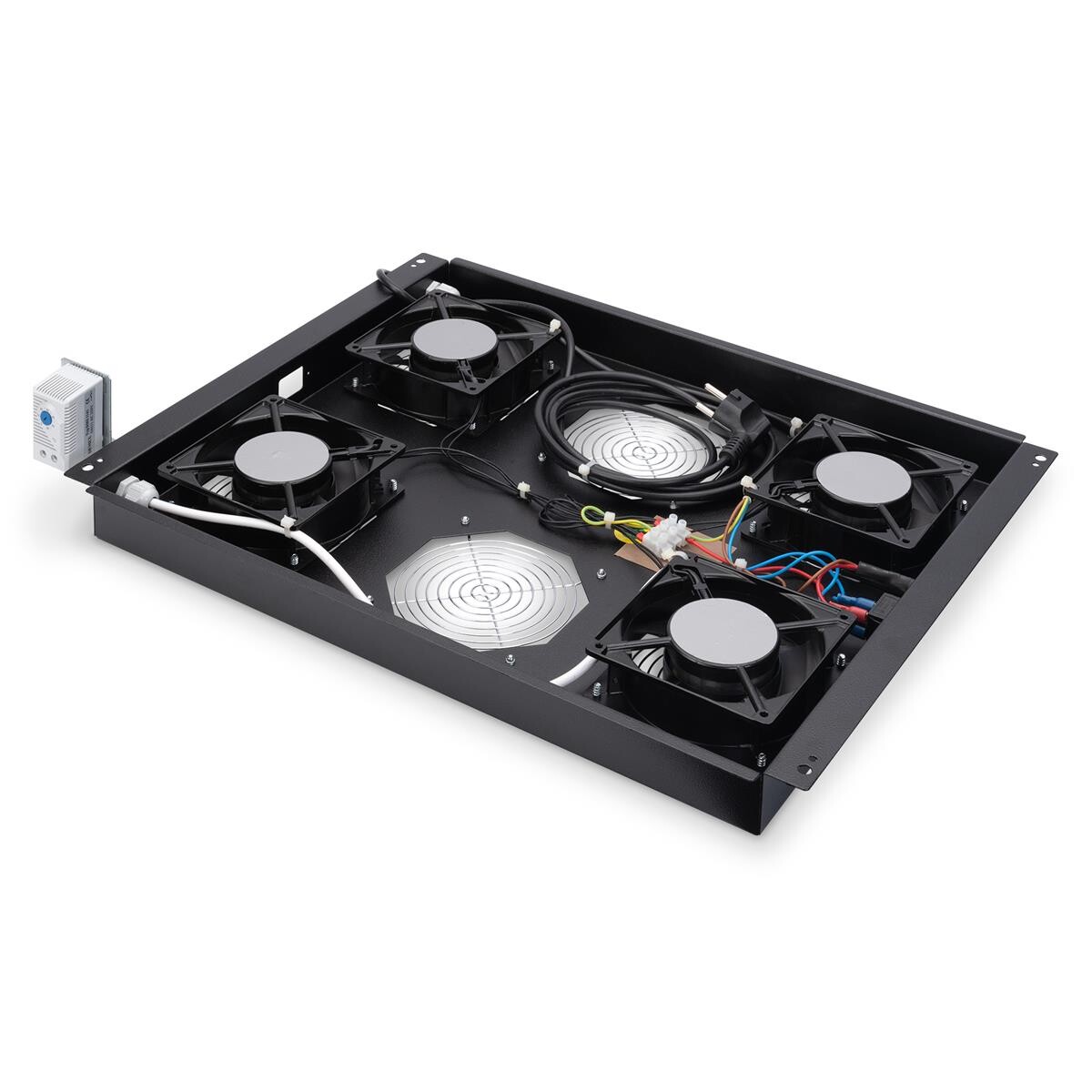 DIGITUS DN-19-FAN-4-SRV-B - Dachlüftereinheit für Unique Serverschränke 4 Lüfter, Thermostat, Schalter,schwarz (RAL 9005)