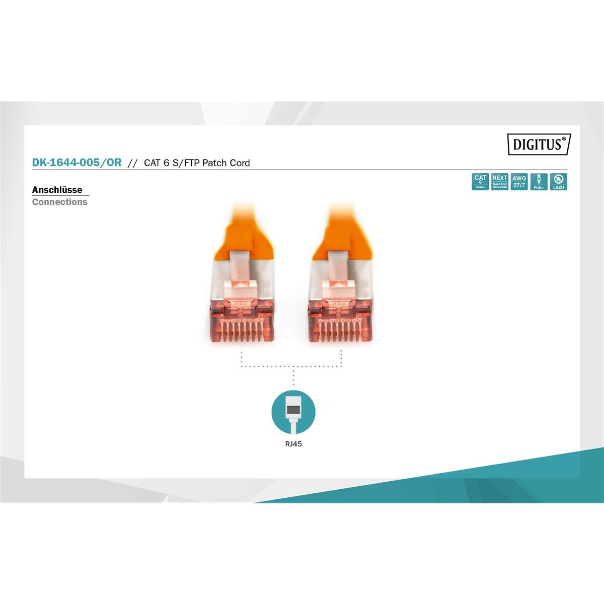 DK-1644-005/OR - CAT 6 S-FTP Patchkabel, Cu, LSZH AWG 27/7, 0,5 m, Orange