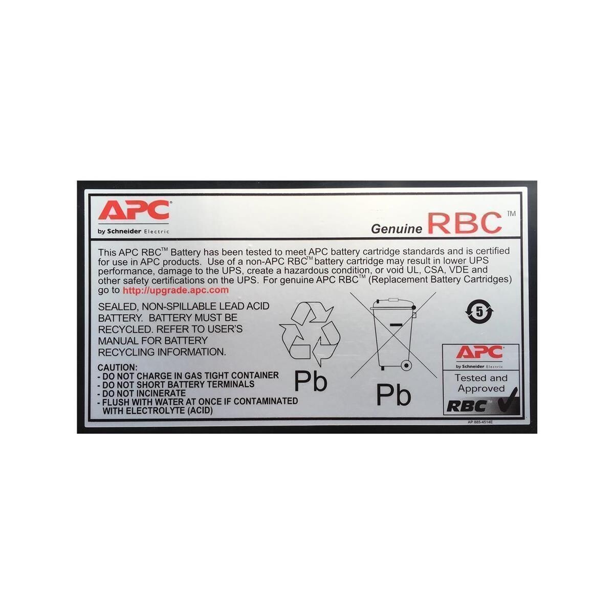 APC APCRBC123 - Plombierte Bleisäure (VRLA) - 1 Stück(e) - 5 Jahr(e) - 5,21 kg - 184 mm - 96 mm