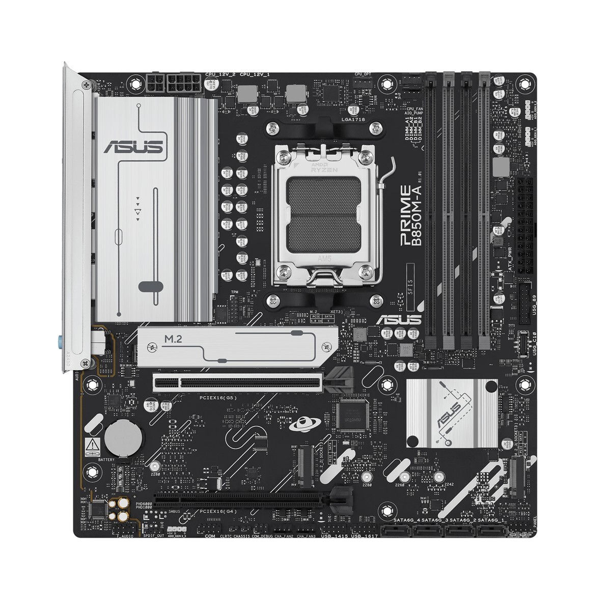 ASUS PRIME B850M-A-CSM, AMD, Sockel AM5, AMD Ryzen 7000 Series, AMD Ryzen 8000 Series, AMD Ryzen 9000 Series, Sockel AM5, DDR5-SDRAM, 256 GB - Mainboard - AMD Sockel AM5 (Ryzen Zen4)