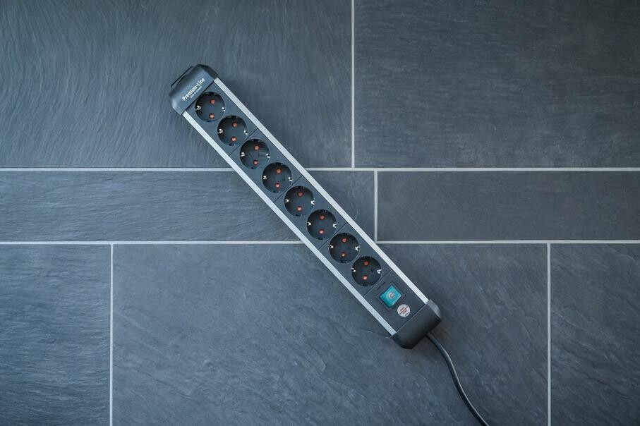 Brennenstuhl 1391030800 - 3 m - Indoor - Abgewinkelt - IP20 - Schwarz - Silber - 8 AC-Ausgänge