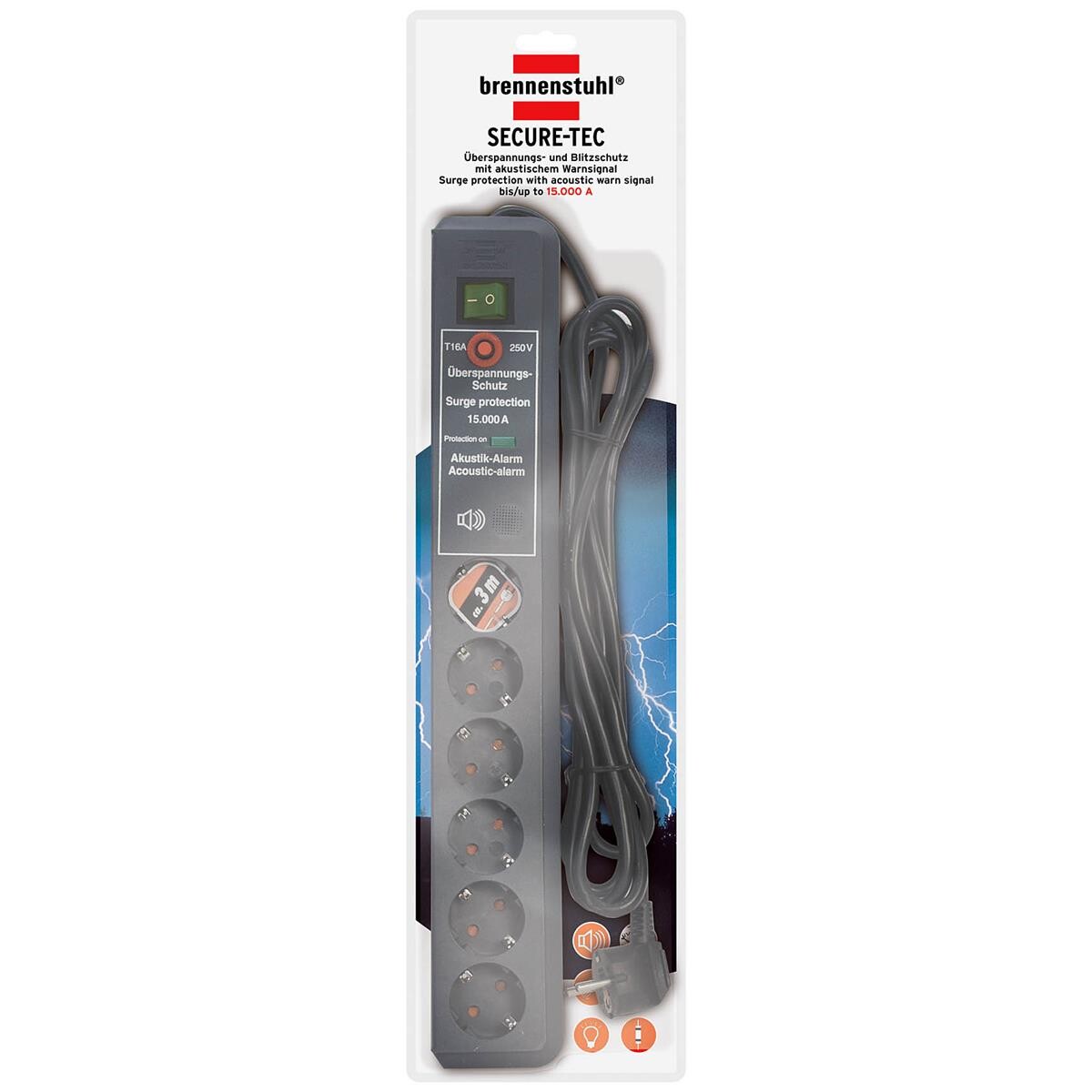 Brennenstuhl Secure-Tec Surge Protection 15.000 A - 6 AC-Ausgänge - 3500 W - Schwarz - 3 m