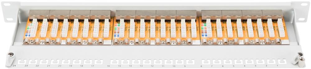 DIGITUS DN-91624S - CAT 6 Patch Panel, geschirmt, 24-port RJ45, 8P8C, LSA, 1HE, Schrankmontage, grau RAL 7035