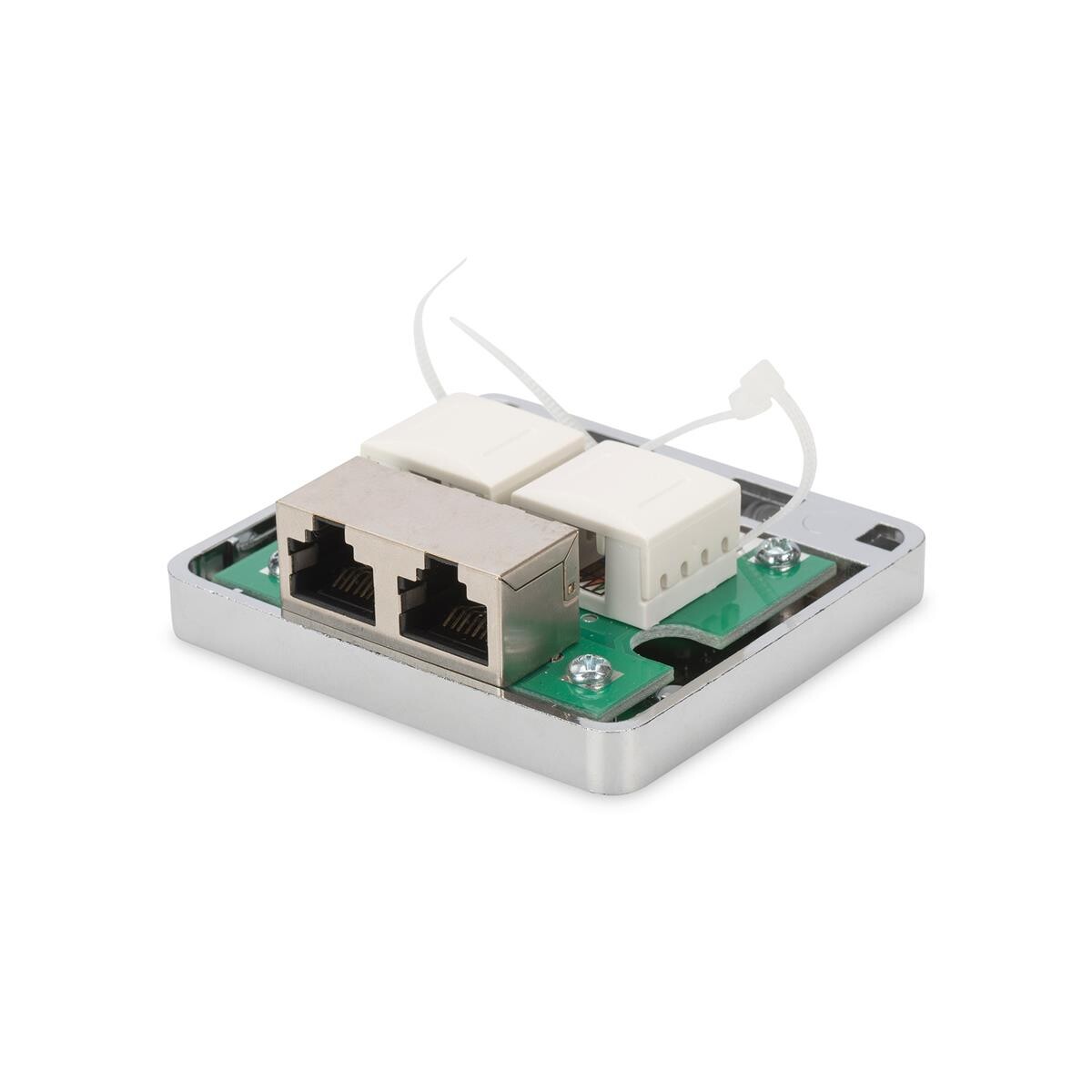 DIGITUS Cat 6A Netzwerk Anschlussdose, 2x RJ45 Buchse, 2x LSA Schneidklemme, 500 MHz, Geschirmt, Silber
