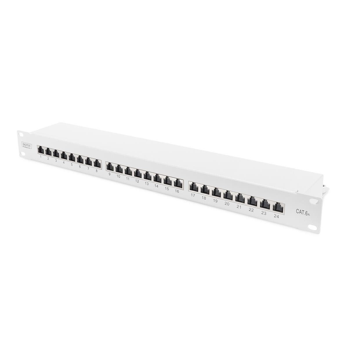 DIGITUS LSA Patch-Panel Cat-6A - 24 Ports - 1 HE - Geschirmt - Klasse EA - Staubschutz-Klappe - Grau RAL 7035