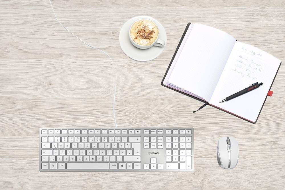 Cherry KC 6000 SLIM Kabelgebundene Tastatur - Silber/ Weiß - USB (QWERTZ - DE) - Volle Größe (100%) - Kabelgebunden - USB - QWERTZ - Silber