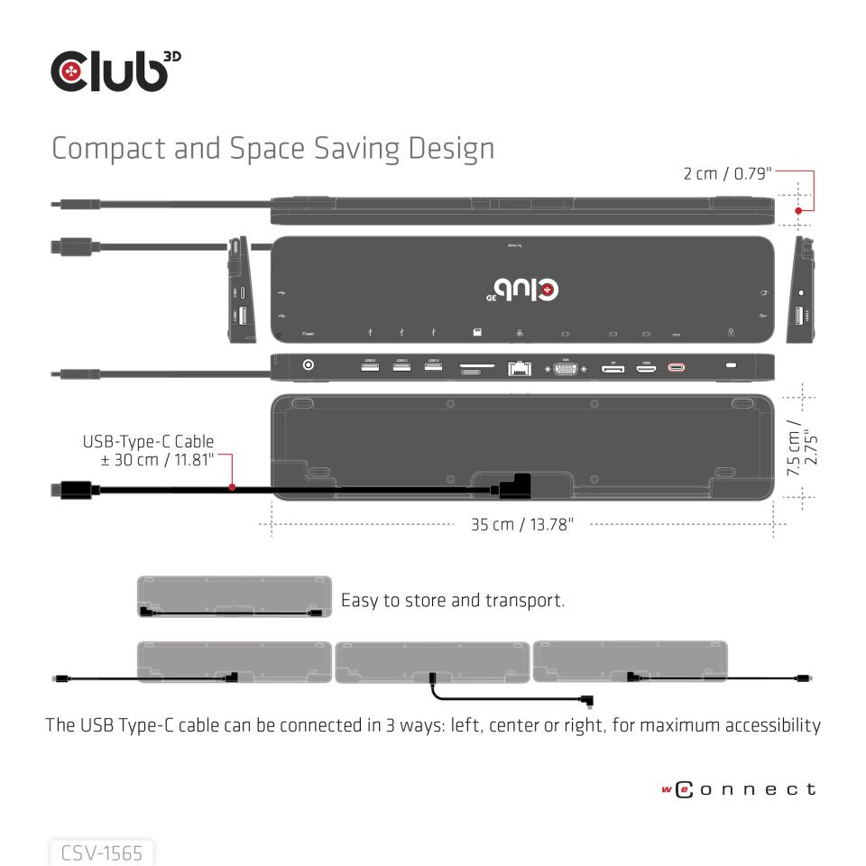 Club 3D Dockingstation USB Gen1 Typ-C Dreifach-Display DP1.4 Alt-Modus Smart PD3.0 mit 100-Watt-Netzteil - Andocken - USB 3.2 Gen 1 (3.1 Gen 1) Type-C - Schwarz