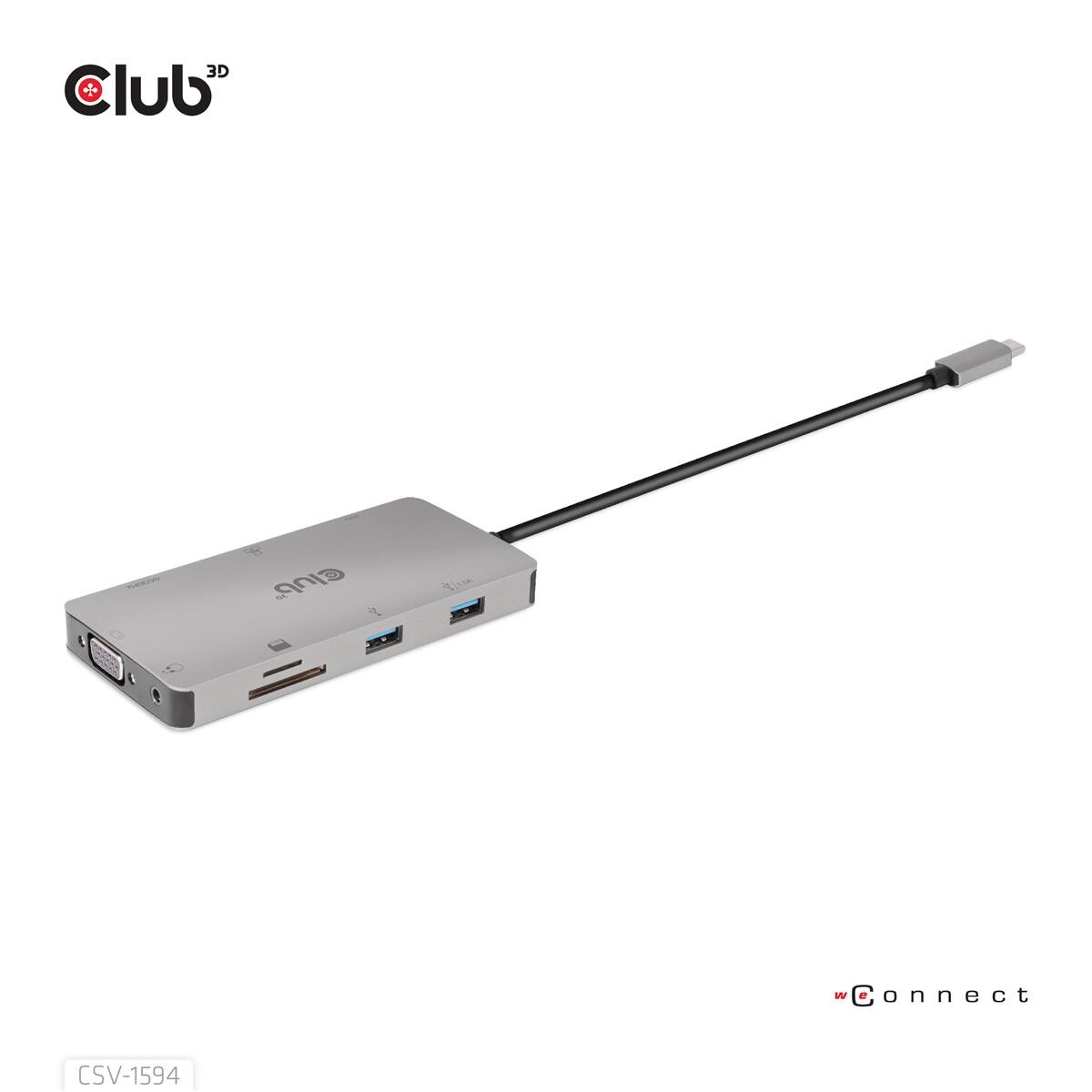 Club 3D USB Gen1 Type-C 9-in-1 hub with HDMI - VGA - 2x USB Gen1 Type-A - RJ45 - SD/Micro SD card slots and USB Gen1 Type-C Female port - USB 3.2 Gen 1 (3.1 Gen 1) Type-C - 100 W - 10,100,1000 Mbit/s - Schwarz - Grau - MicroSD (TransFlash) - SD - 60 Hz