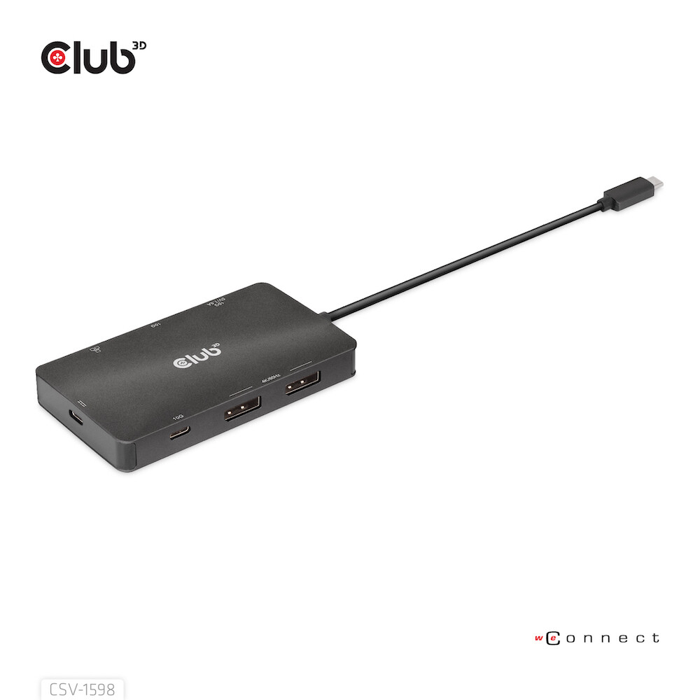 Club 3D USB Gen2 Type-C to Dual DisplayPort 4k60Hz 7-in-1 HUB - USB 3.2 Gen 2 (3.1 Gen 2) Type-C - 100 W - 1.4/2.2 - 10,100,1000 Mbit/s - Schwarz - 4K Ultra HD