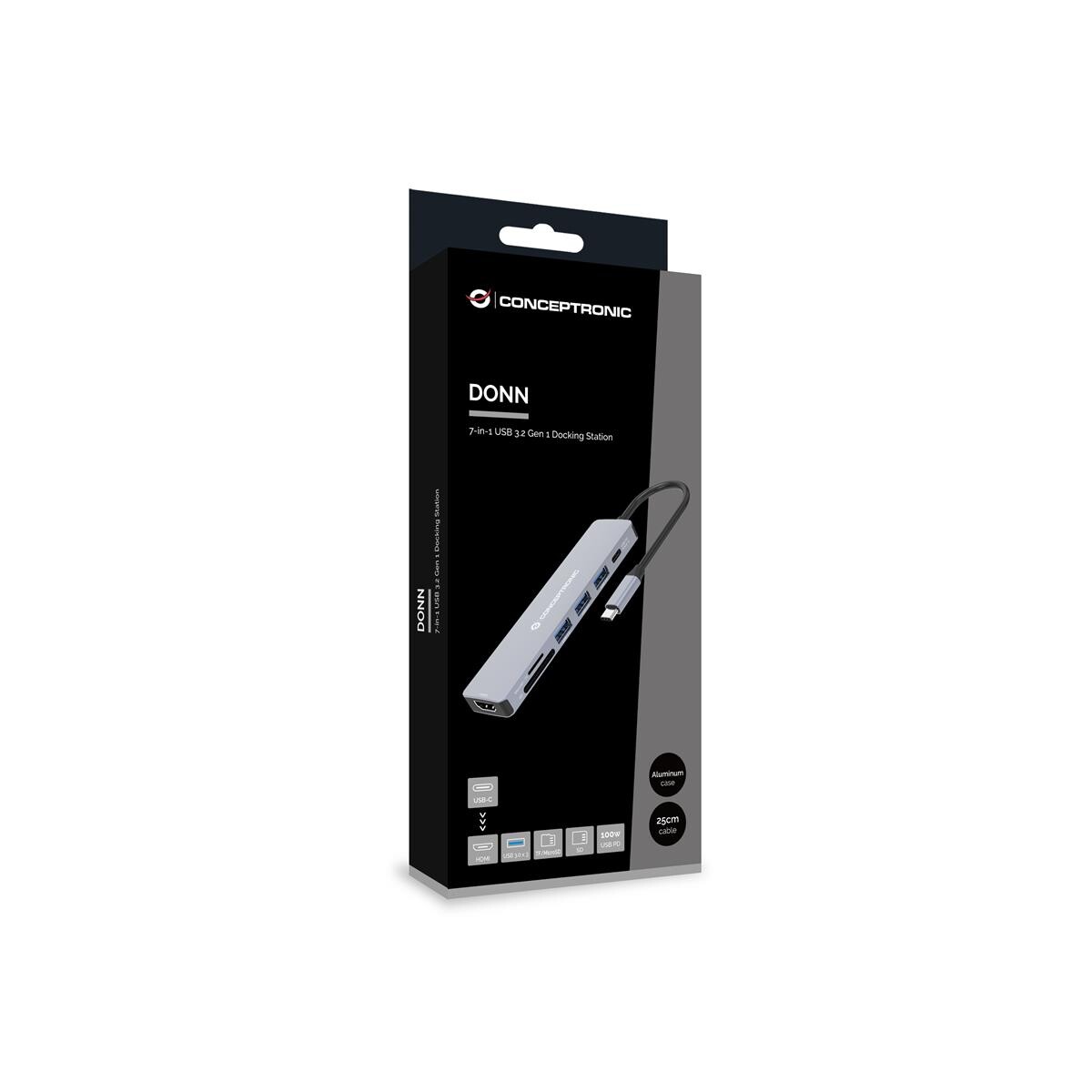 Conceptronic DONN19G 7-in-1 USB 3.2 Gen 1 Dockingstation - HDMI - USB-A 3.0 x 3 - SD - TF/MicroSD - 100W USB PD - Kabelgebunden - USB 3.2 Gen 1 (3.1 Gen 1) Type-C - 100 W - Grau - MicroSD (TransFlash) - SD - 5 Gbit/s