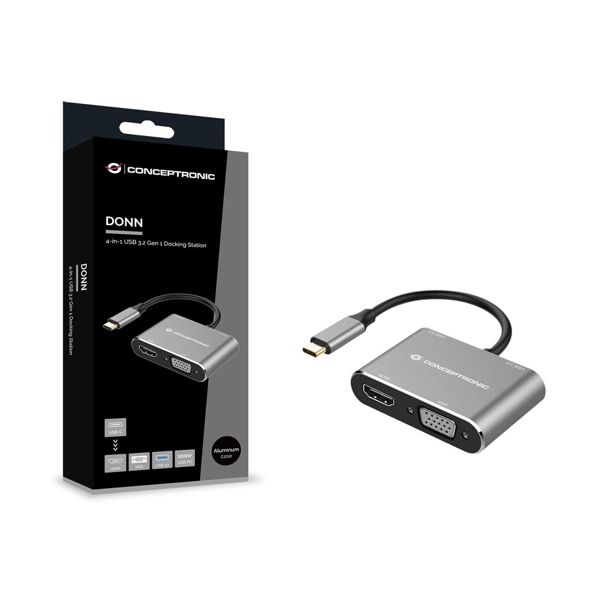 Conceptronic Dock USB-C->HDMI USB3.0 VGA 100WPD 15cm gr