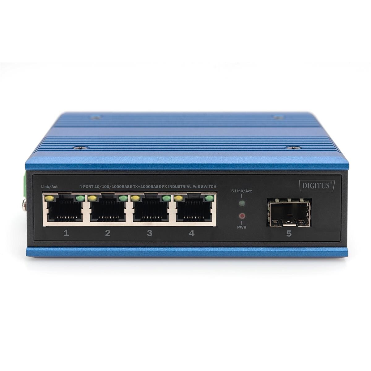 DIGITUS 4 Port Gigabit Ethernet Netzwerk PoE Switch, Industrial, Unmanaged, 1 SFP Uplink
