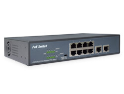 DIGITUS 8-Port Fast Ethernet PoE Netzwerkswitch, Desktop, unmanaged, 2 Uplink Ports RJ45,120 W, af/at