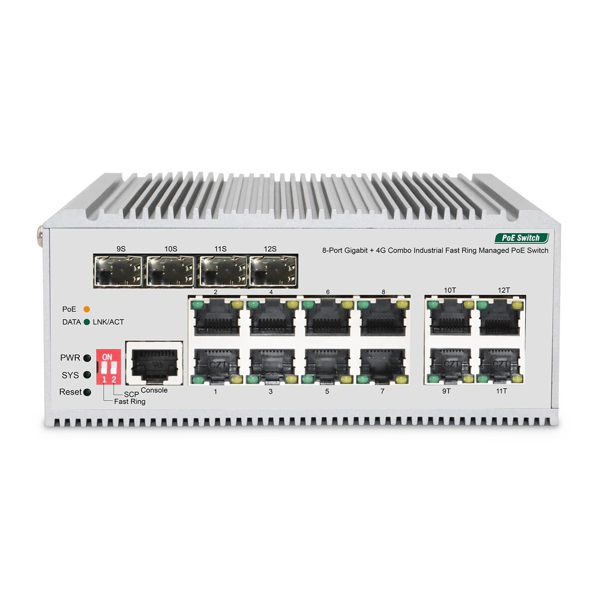 DIGITUS 8 Port Gigabit Ethernet Netzwerk PoE Switch, Industrial, L2 managed, 4 SFP Uplink