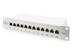 DIGITUS CAT 6A Patch Panel, geschirmt, 12-Port, 1HE, 10", grau