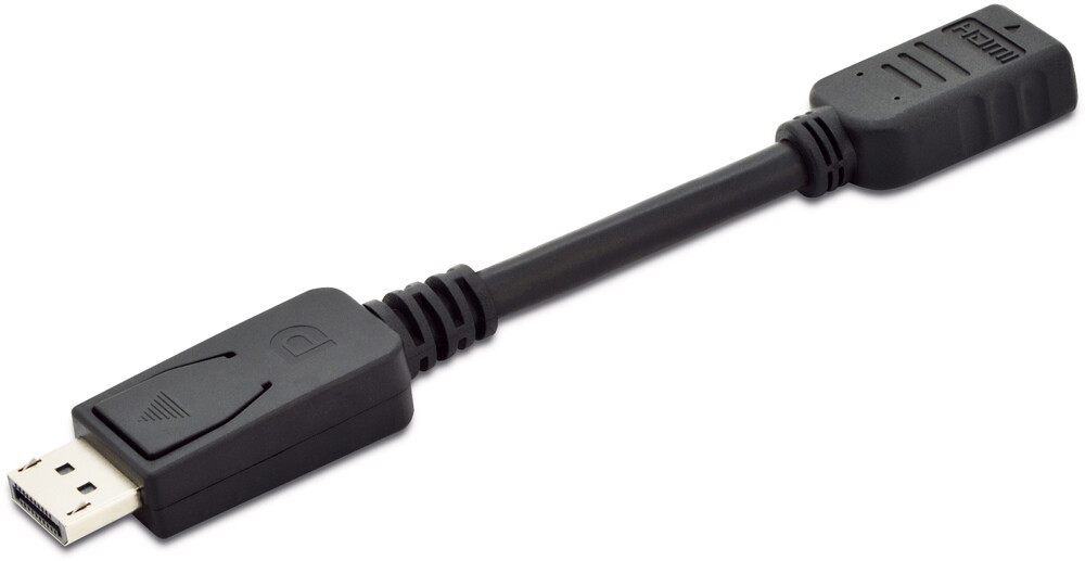 DIGITUS AK-340400-001-S - DisplayPort Adapterkabel, DP - HDMI Typ A St/Bu, 0.15m,m/Verriegelung, DP 1.1a komp., CE, sw