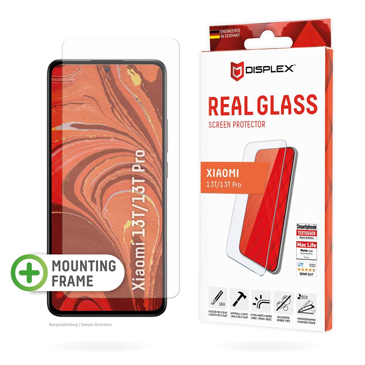 E.V.I. Displex Panzerglas 10H - 2D für Xiaomi 13/13T Pro - Eco-Montagerahmen