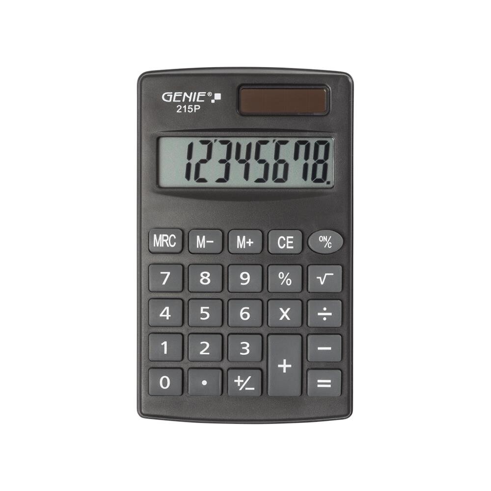 Genie 215 P - Tasche - Einfacher Taschenrechner - 8 Ziffern - Batterie/Solar - Schwarz