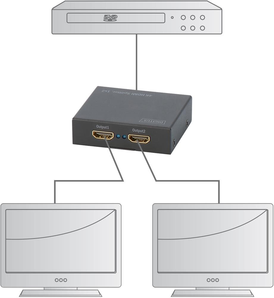 HDMI Splitter 2-Port, 4K Aufl.max.4096x2304, 3D Support