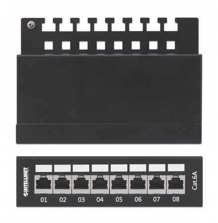 IC Intracom 8-Port Cat6a Patchpanel - geschirmt - Desktop - FTP - Klemmleisten mit 90 Grad abgewinkelten Kabeleinführungen - schwarz - IEEE 802.3 - IEEE 802.3ab - IEEE 802.3u - 10/100/1000Base-T(X) - Gigabit Ethernet - 1000 Mbit/s - Gold - Cat6a