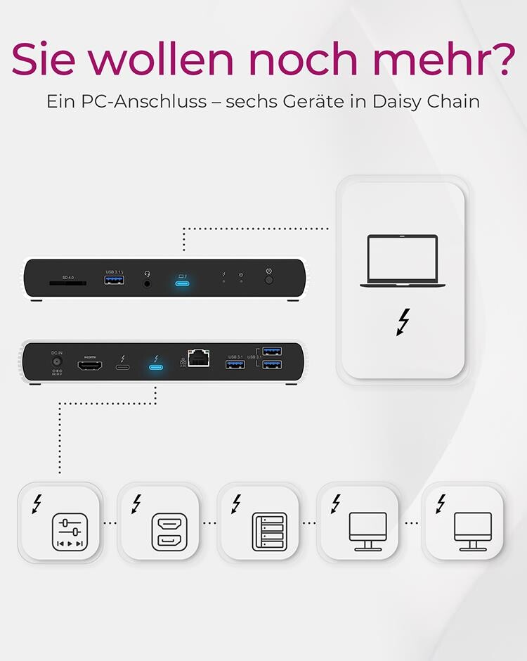 ICY BOX IB-DK8801-TB4 - Kabelgebunden - Thunderbolt 4 - 96 W - 10,100,1000,2500 Mbit/s - Anthrazit - Schwarz - SD