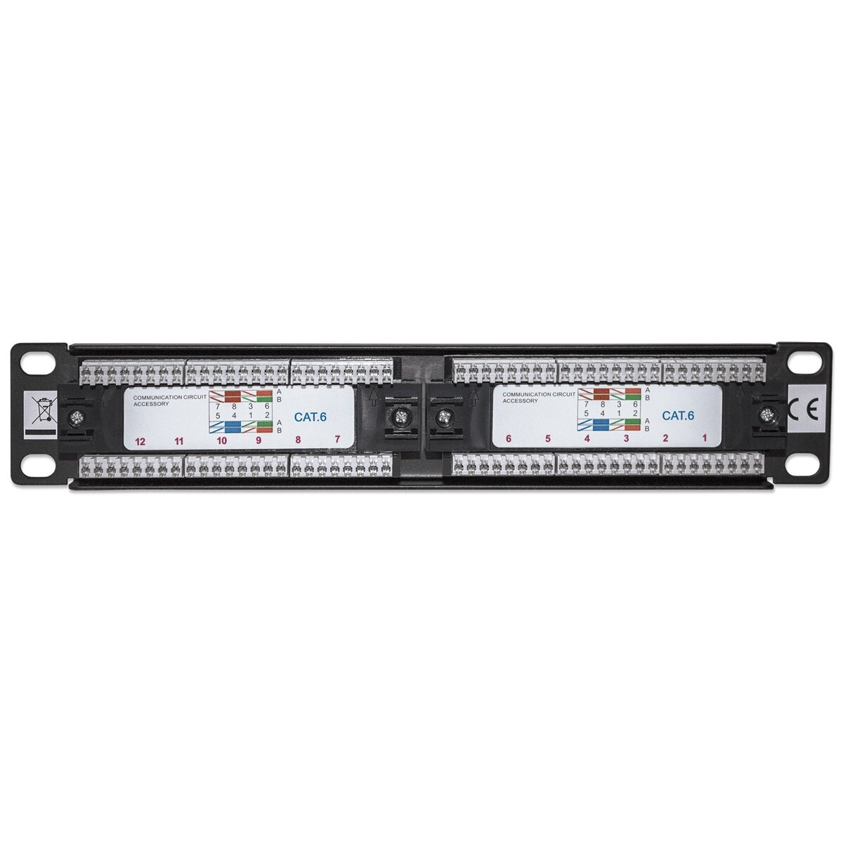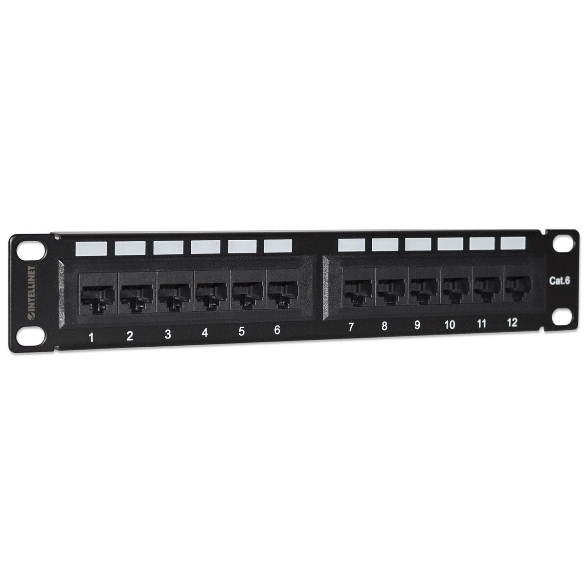 Intellinet 10" 12-Port Cat6 Patchpanel - UTP - 10" - 1 HE - schwarz - RJ-45 - U/UTP (UTP) - Schwarz - Rackeinbau - 1U - 254 mm