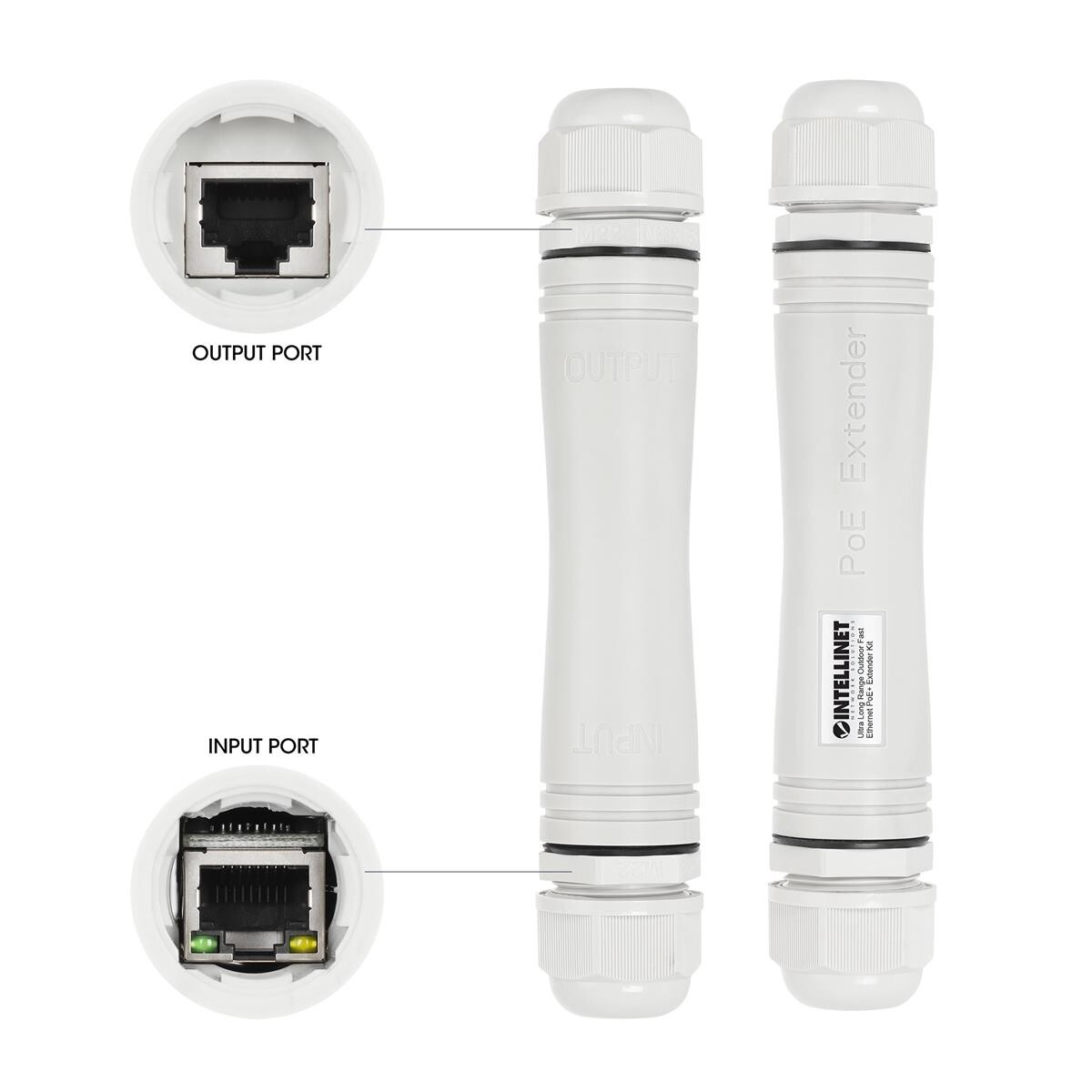 Intellinet Ultra Long Range Outdoor 10/100 PoE+ Extender Set Verlängert PoE-Reichweite auf bis