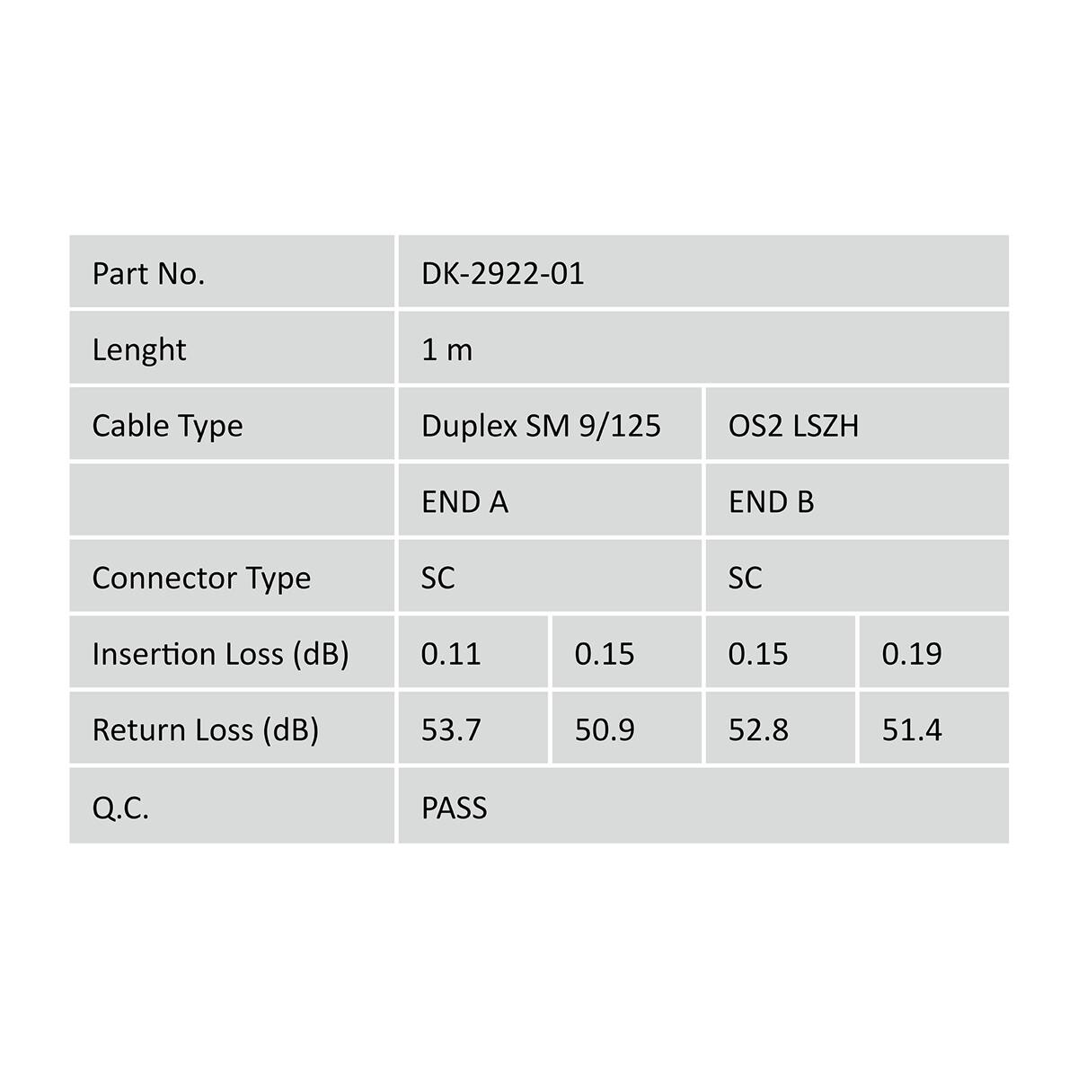 DIGITUS DK-2922-01 - LWL Patchkabel, Duplex, SC zu SC SM OS2 09/125 µ, 1 m
