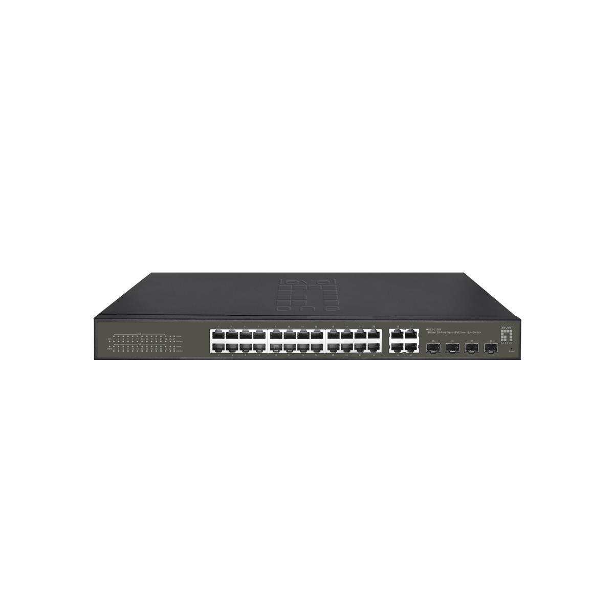 LevelOne Hilbert 28-Port Gigabit PoE Smart Lite Switch - 24 PoE Ausgänge - 4 x Gigabit SFP/RJ45 Combo - 802.3at/af PoE - 380W PoE-Leistungsbudget - Managed - L2 - Gigabit Ethernet (10/100/1000) - Vollduplex - Power over Ethernet (PoE) - Rack-Einbau