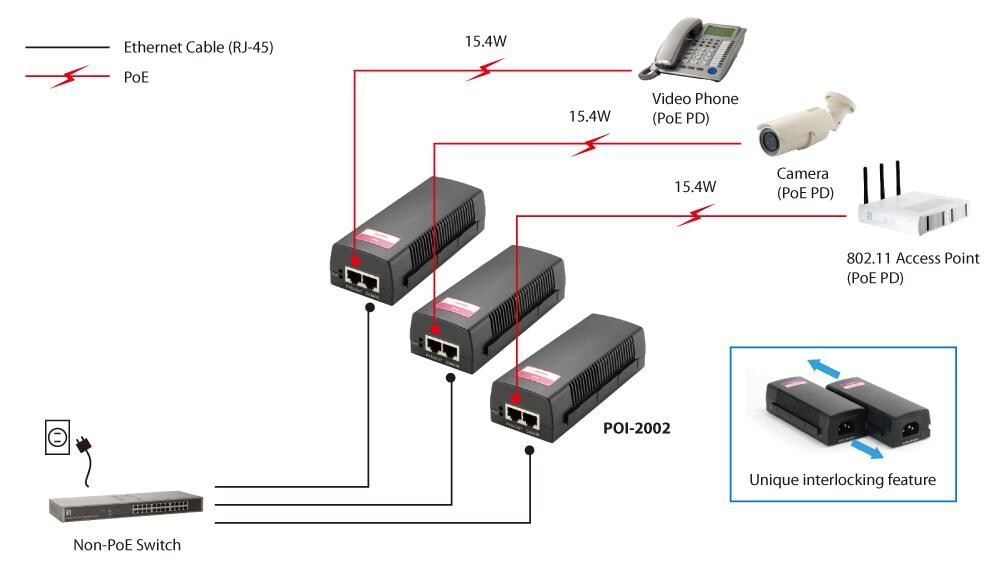 LevelOne POI-2002 - Power Injector - 15.4 Watt