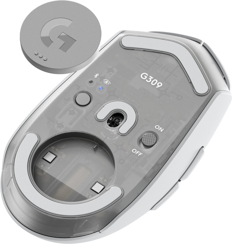 Logitech G G309, rechts, Optisch, RF Wireless + Bluetooth, 2560 DPI, 400 fps, Weiß