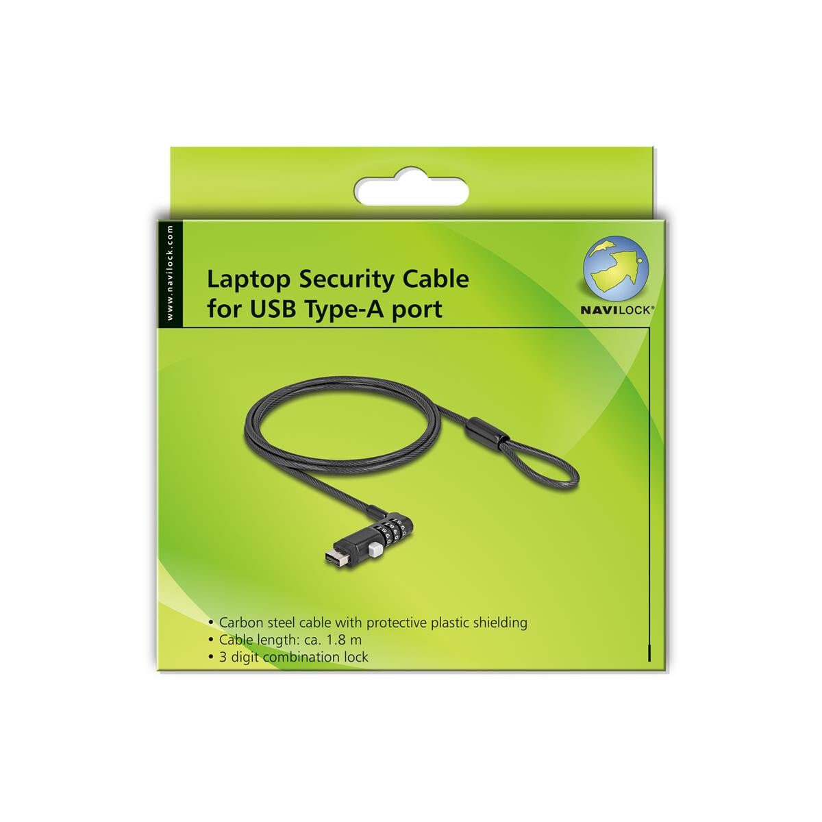 Navilock 20916 - 1,8 m - USB Typ-A - Zahlenschloss - Karbonstahl - Schwarz