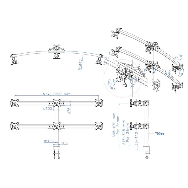 Iiyama Gasdruckfederarm für Gaming Monitore - Klemme - 9 kg - 43,2 cm (17") - 76,2 cm (30") - 100 x 100 mm - Schwarz - Rot