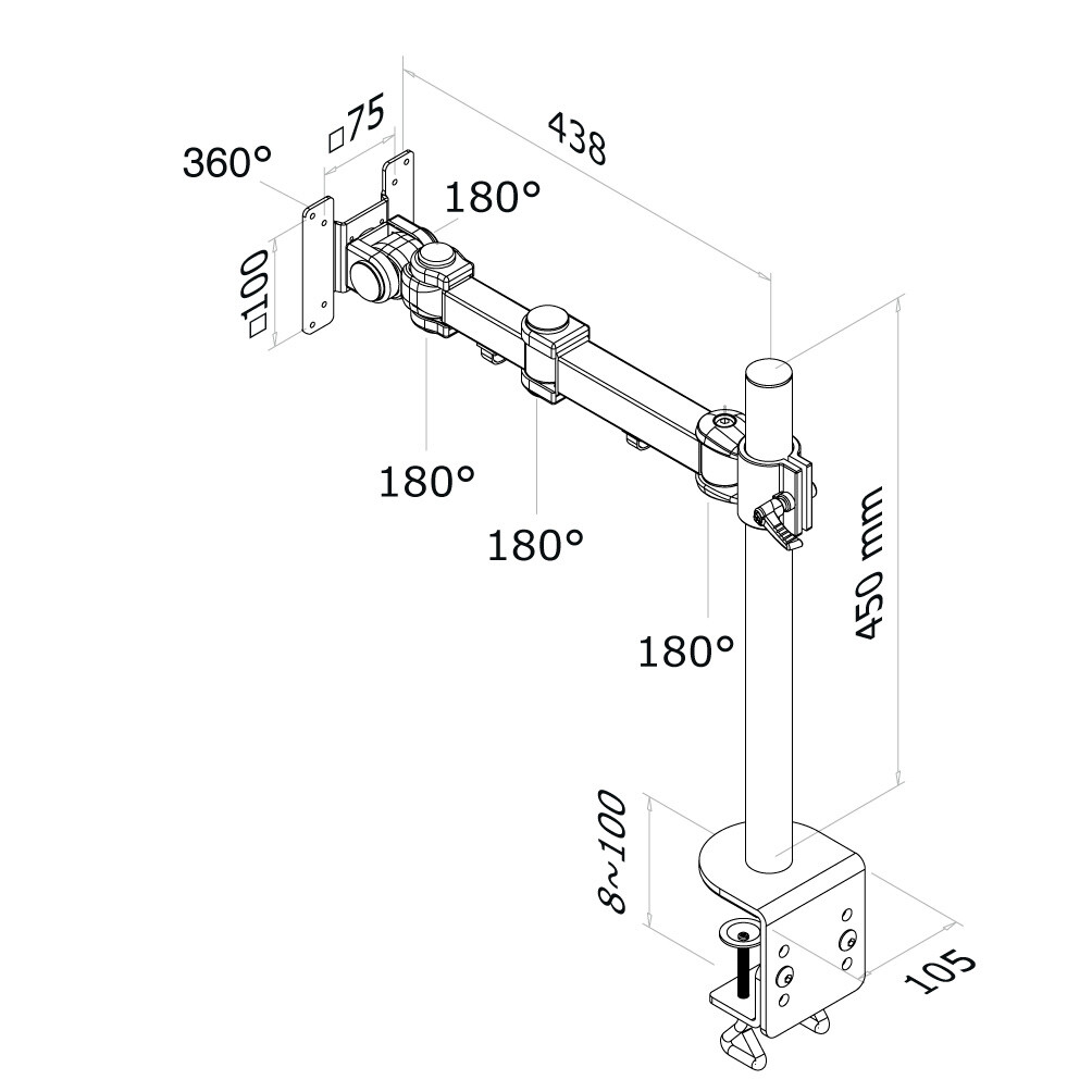 Iiyama Gasdruckfederarm für Gaming Monitore - Klemme - 9 kg - 43,2 cm (17") - 76,2 cm (30") - 100 x 100 mm - Schwarz - Rot