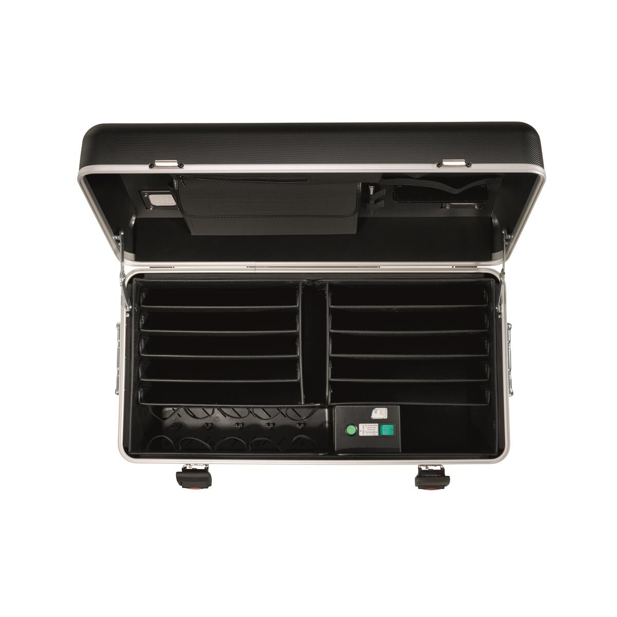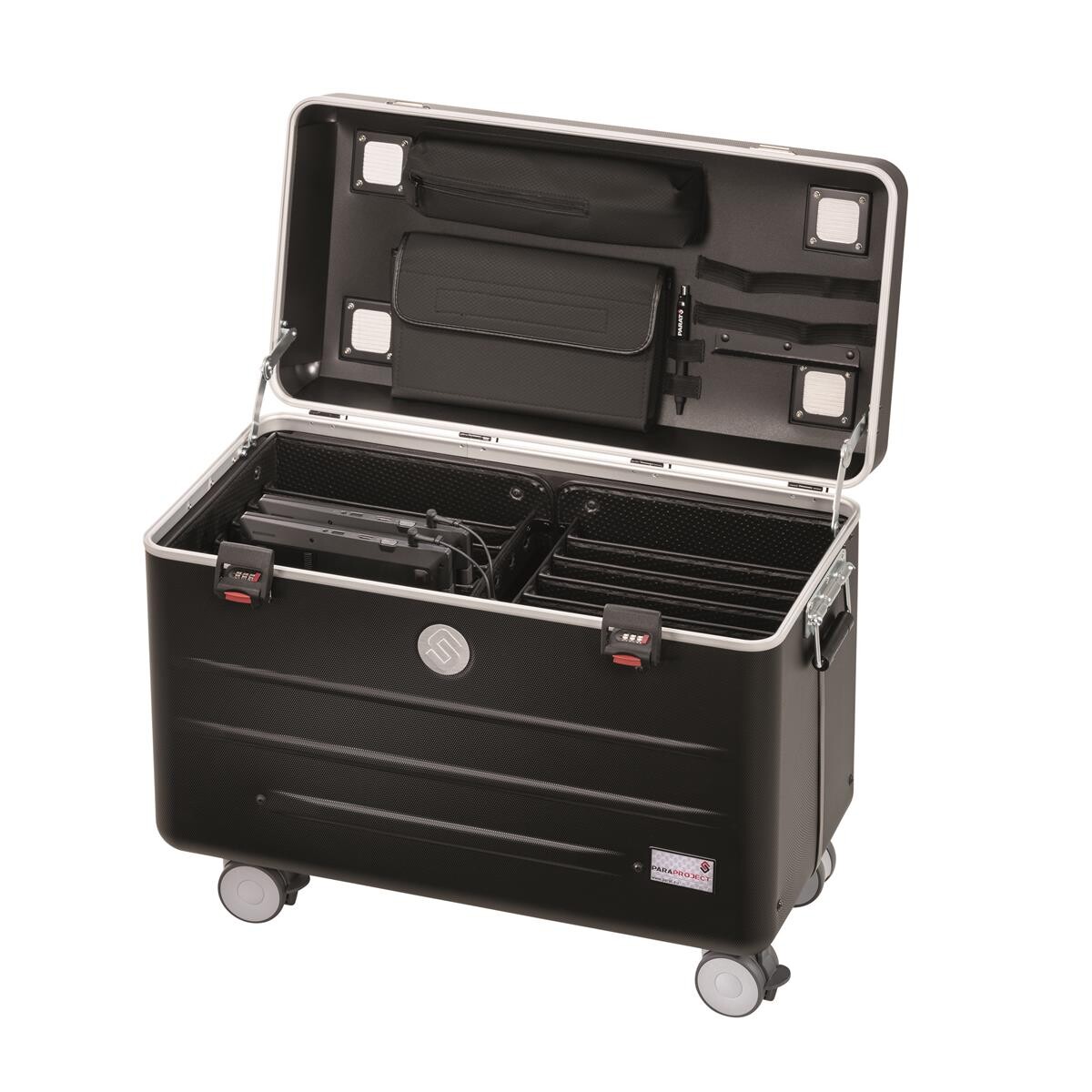 PARAT Case N10, Multimedia-Wagen, Schwarz, Acrylnitril-Butadien-Styrol (ABS), Aluminium, Schaum, Laptop, 39,6 cm (15.6"), 2 Schublade(n)