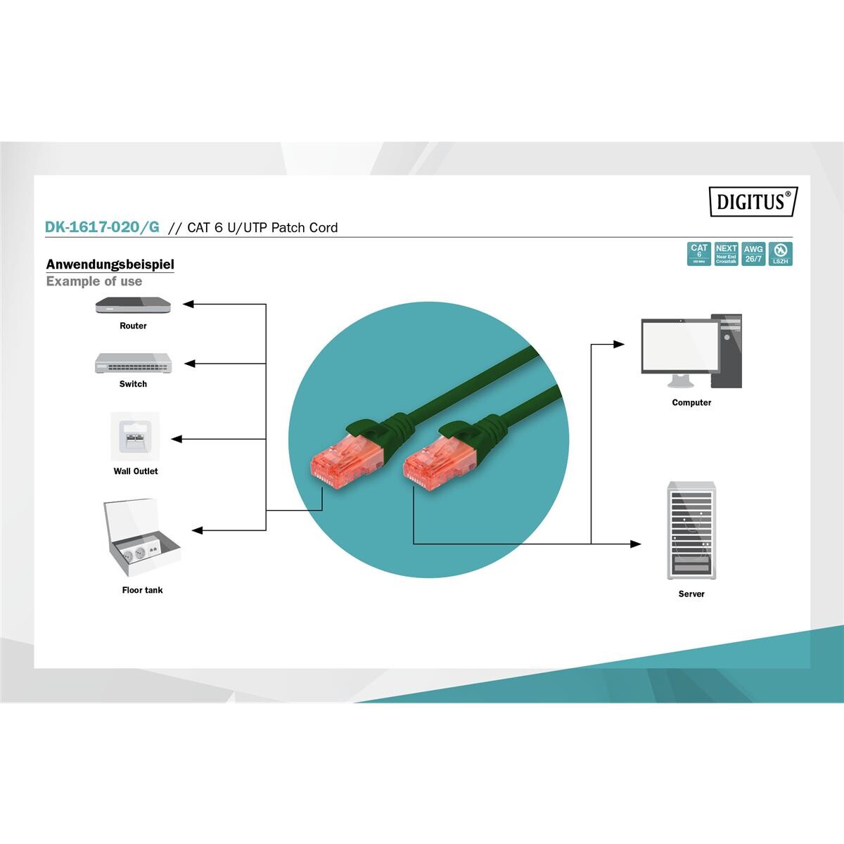 DIGITUS DK-1617-020/G - CAT 6 U-UTP Patchkabel, Cu, LSZH AWG 26/7, Länge 2 m, Farbe Grün