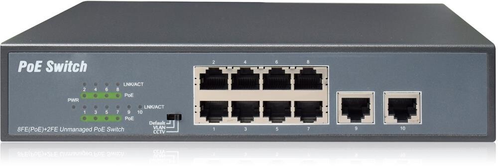 • 8-Port 10/100Base-TX mit PoE Unterstützung