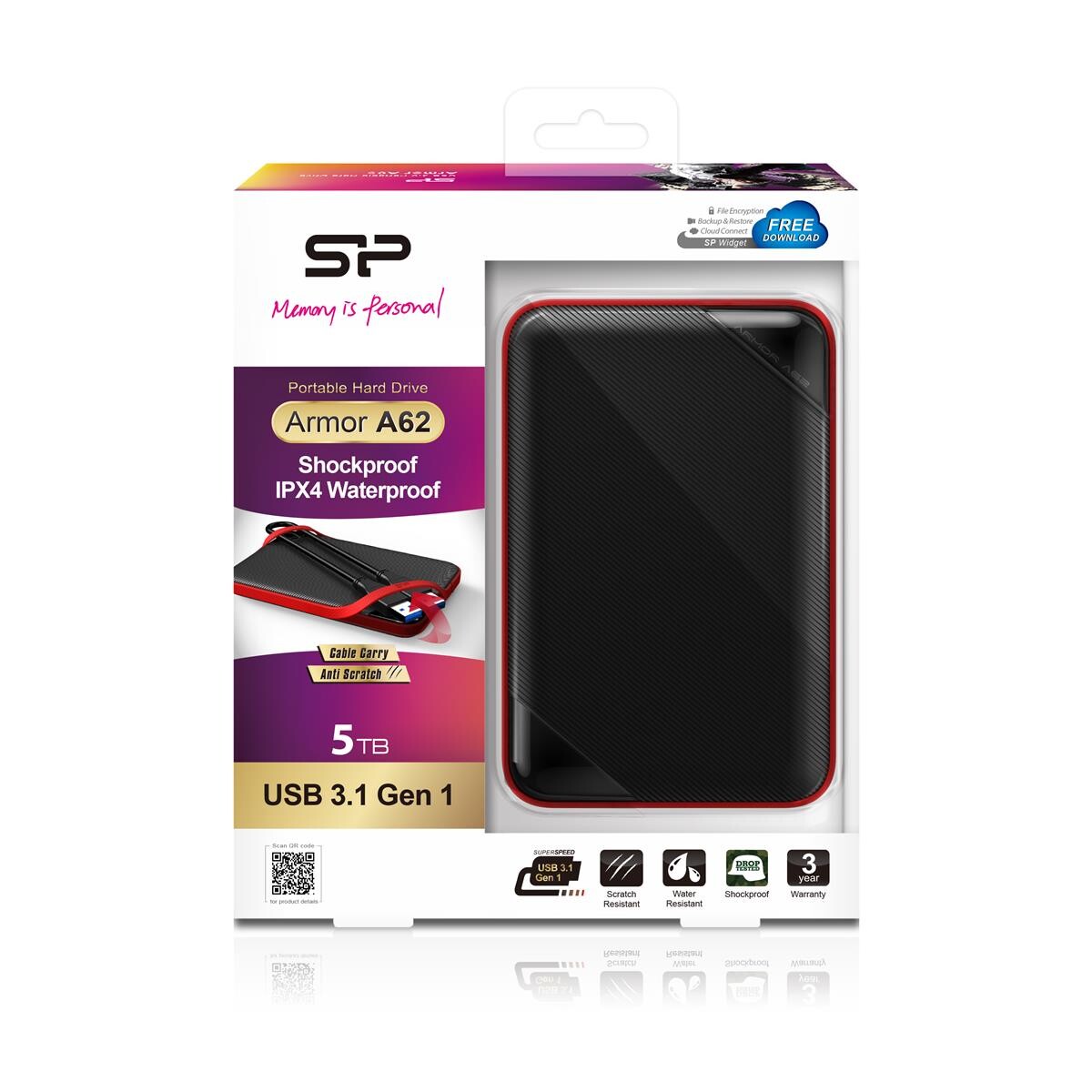 Silicon Power Armor A62 - 5 TB - 2.5" - 3.2 Gen 1 (3.1 Gen 1) - Schwarz - Rot