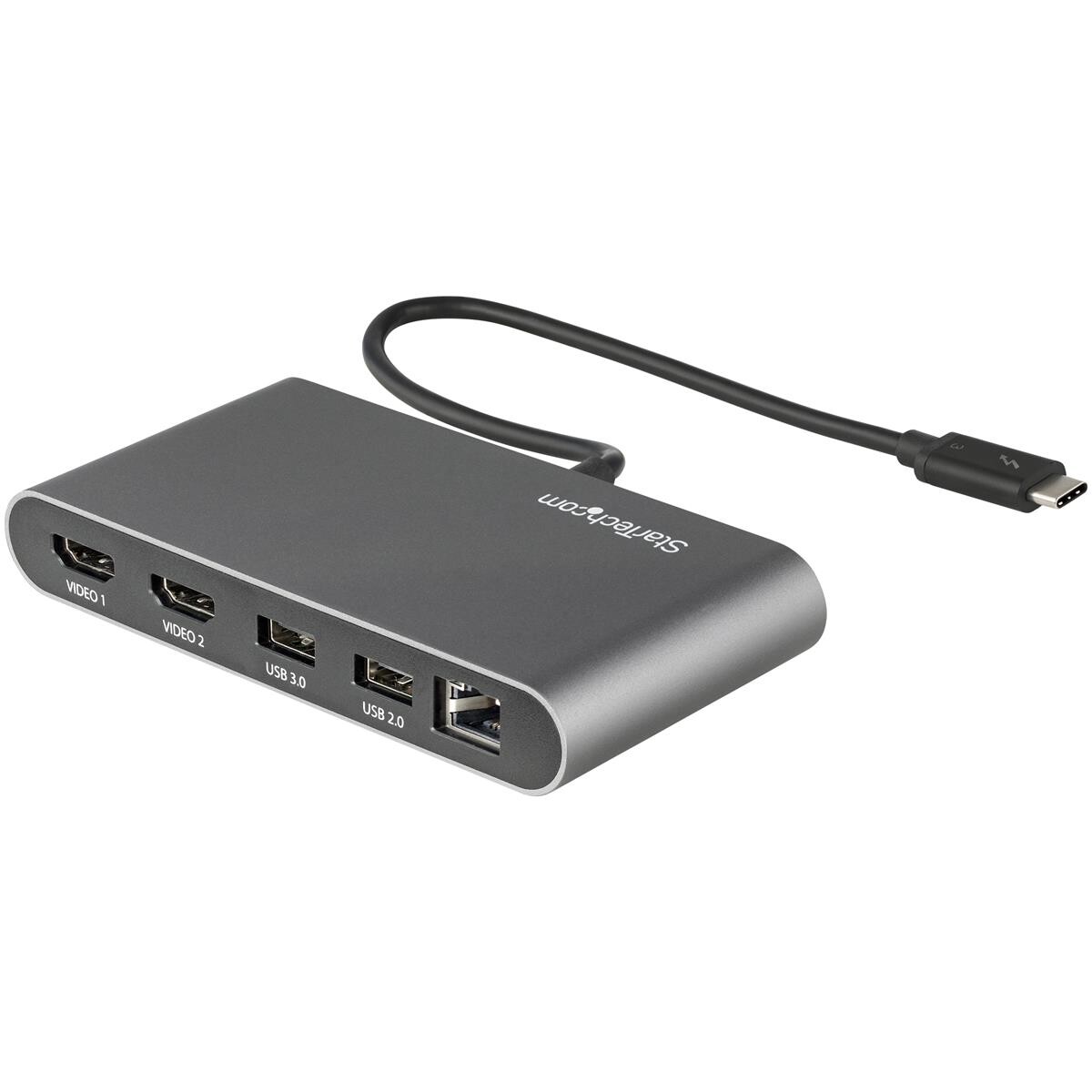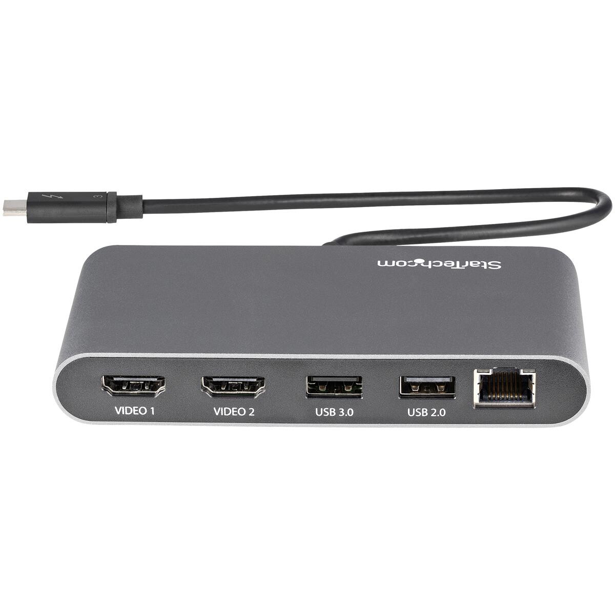 StarTech.com Thunderbolt 3 Mini Dockingstation - Tragbare Dockingstation für Zwei Monitore - HDMI 4K 60 Hz - 2x USB-A Hub (3.2/2.0) - GbE - 28cm Kabel - TB3 Multiport Adapter - Mac/Windows - Kabelgebunden - Thunderbolt 3 - 10,100,1000 Mbit/s - IEEE 802.3ab - IEEE 802.