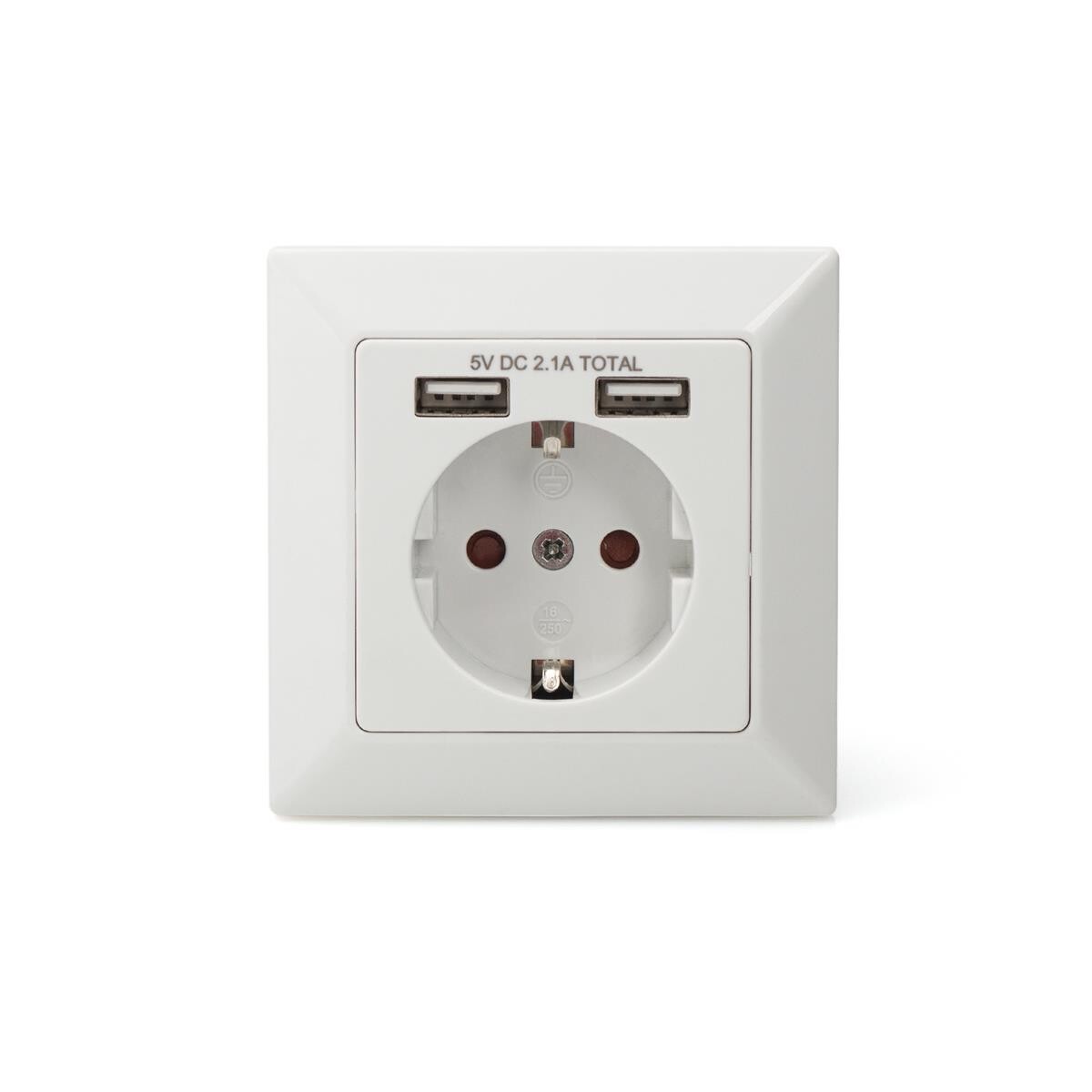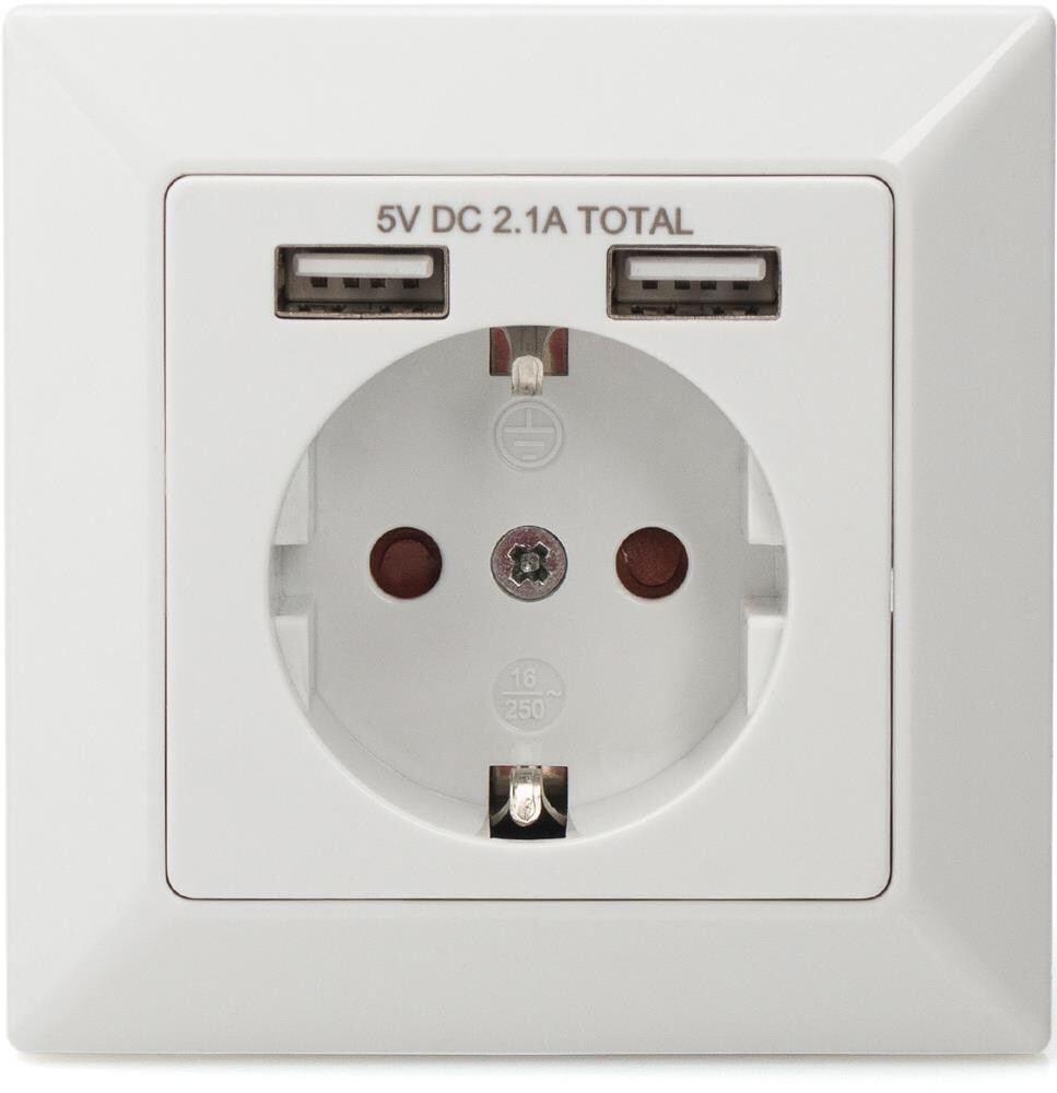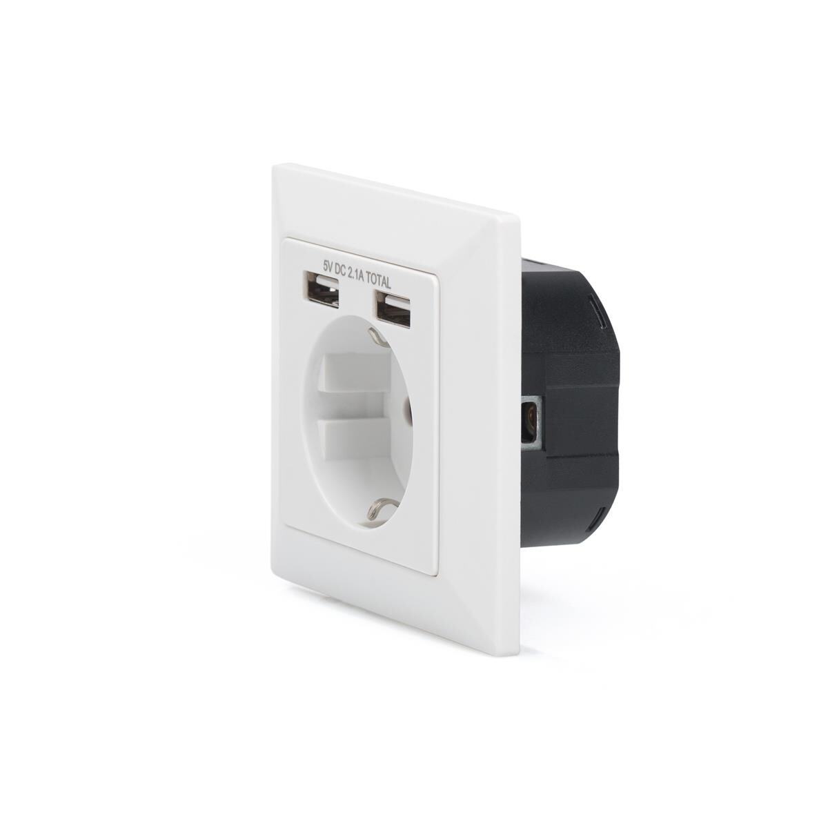 DIGITUS Unterputz-Steckdose mit USB-Ladegerät - 2x USB-A bis 2.1A - Designfähig - Reinweiß RAL 9003