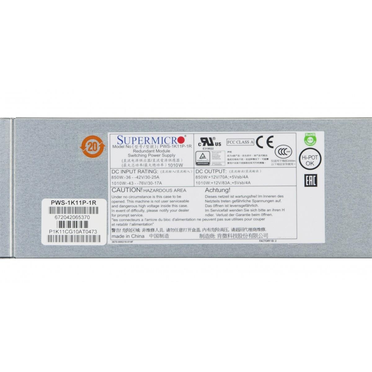 Supermicro PWS-1K11P-1R - 850 W - 1010 W - 30 - 17 A - 83 A - 4 A - 90%