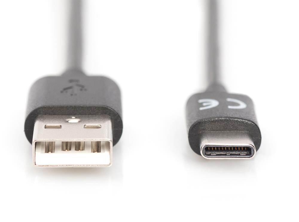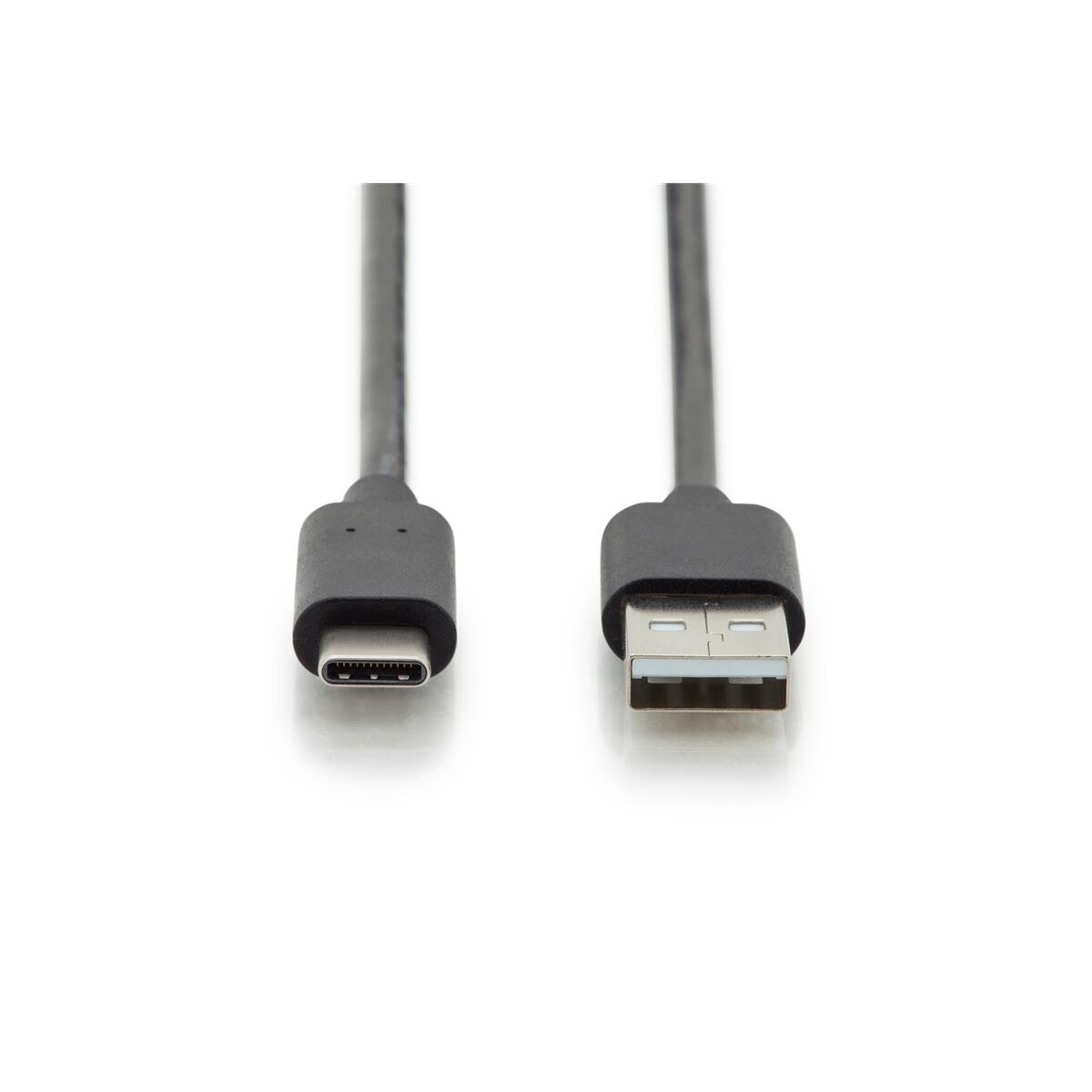 DIGITUS USB 2.0 Anschluss-Kabel - 3m - Verbindungs-Kabel von USB Typ A auf USB Type-C - High-Speed 480 MBit/s - Schwarz