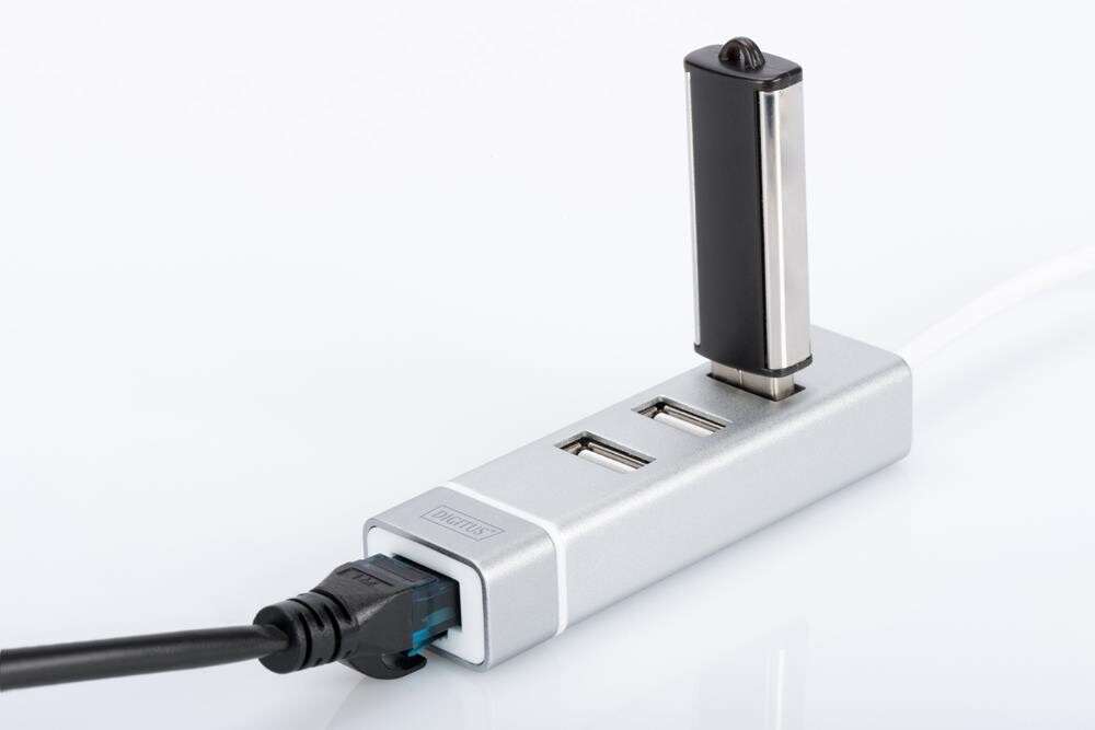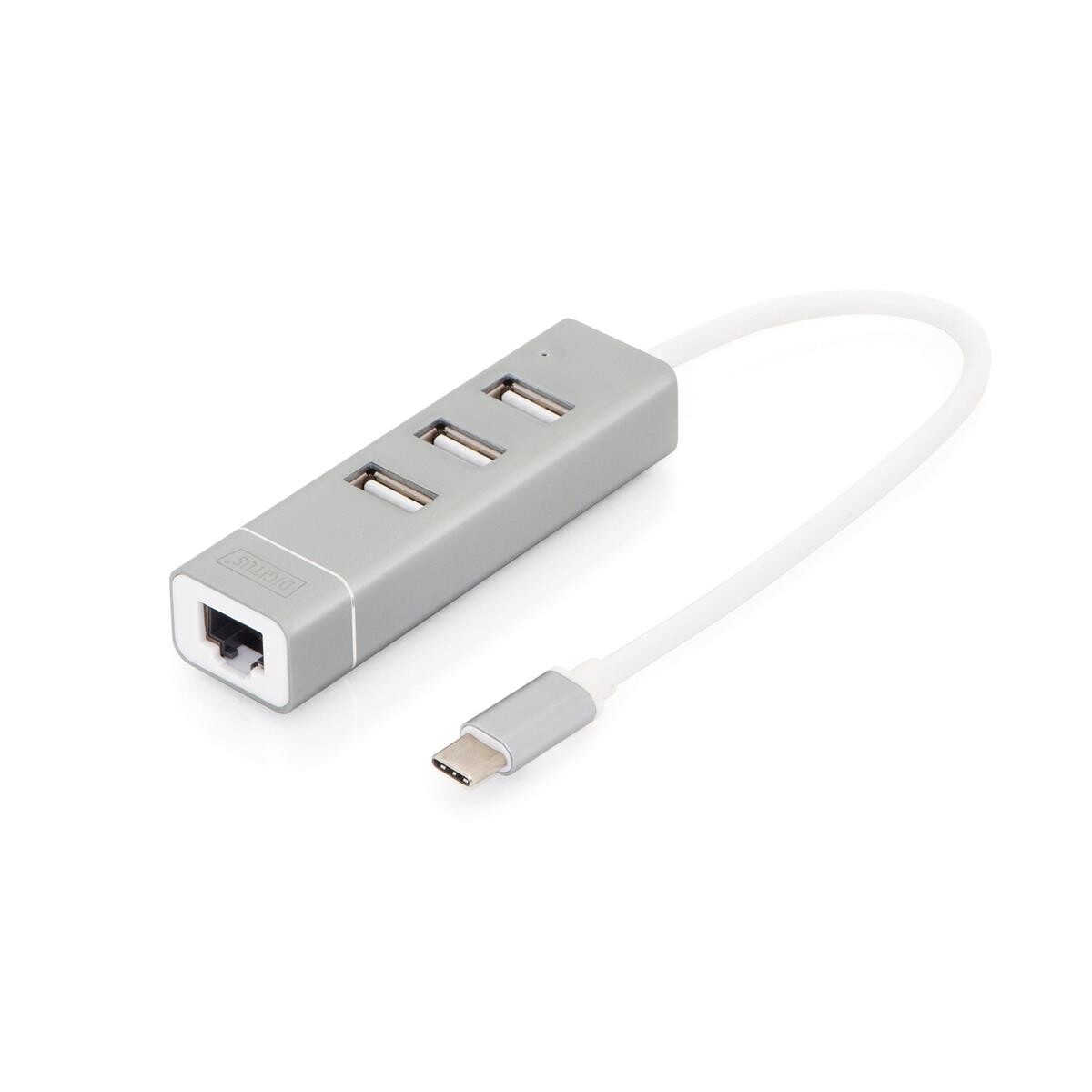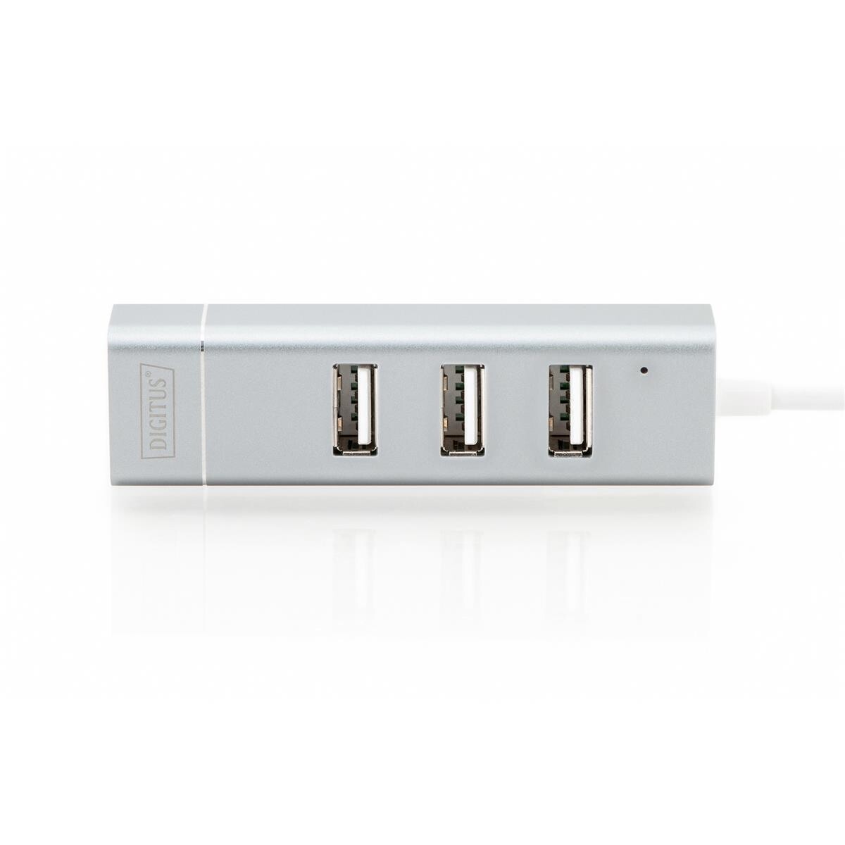 DIGITUS DA-70253 - USB 2.0 Type-C 3-Port HUB & Fast Ethernet LAN 3x USB A/F, 1x RJ45 Lan, Chipset: FE1.1S/RTL8152B