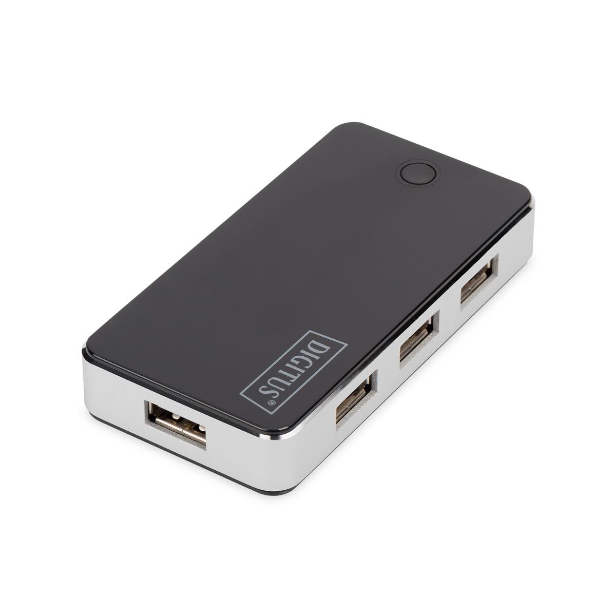 DIGITUS DA-70222 - USB 2.0 Hub 7-port, 7x USB A/F, 1x USB mini inkl. ext. Netzteil 5V DC 3.5A, 1m, sw