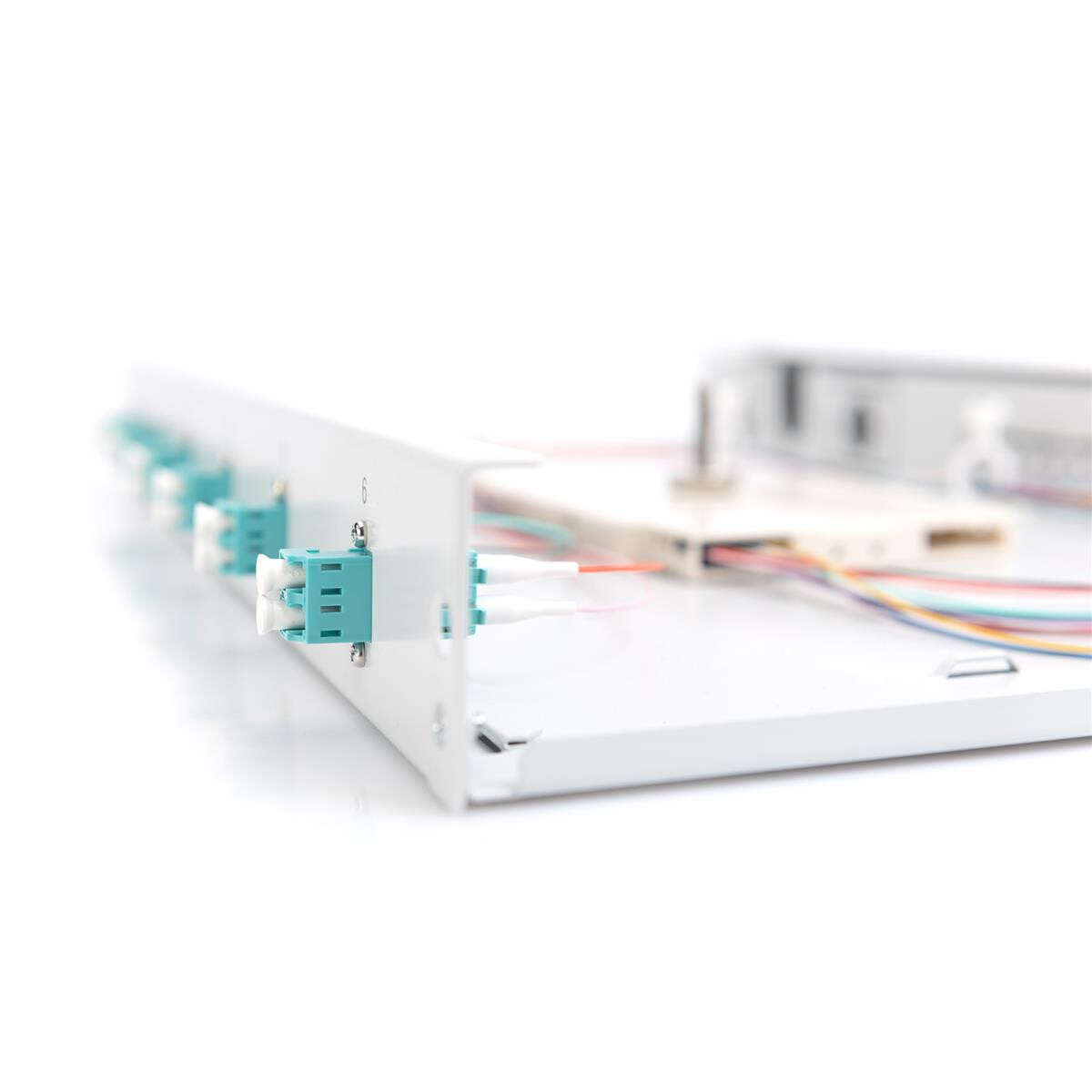 DIGITUS DN-96330/3 - LWL Spleißbox, 1HE, bestückt, 6x LC DX, OM3 inkl. Spleißkass., gefärbte Pigtails, Kupplungen
