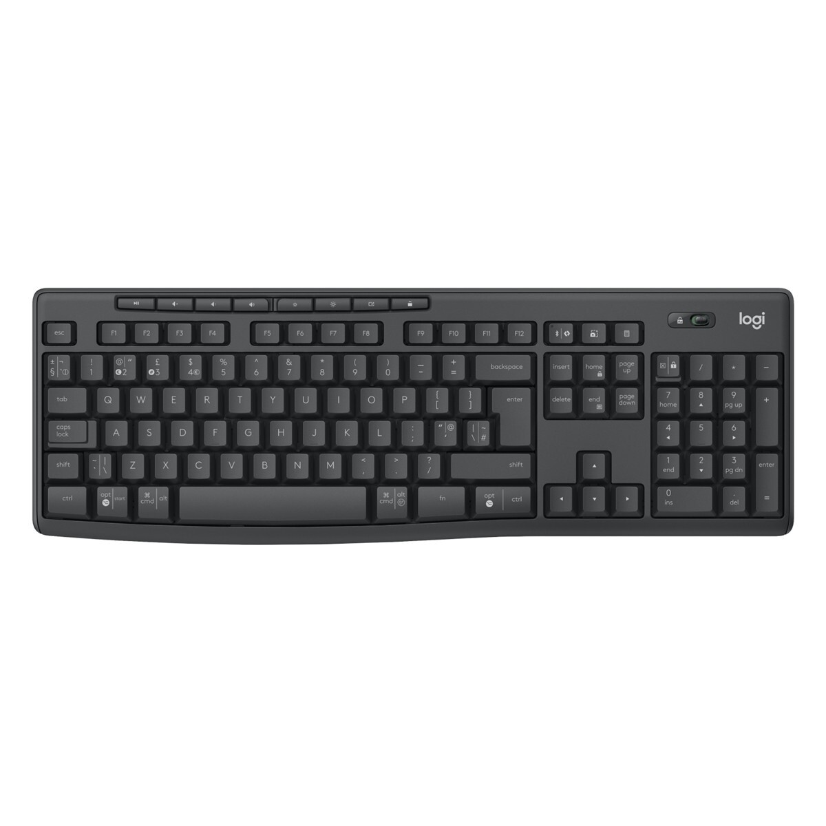 Logitech 920-012073, Kabellos, RF Wireless + Bluetooth, Membran Key Switch, QWERTY, Graphit, Maus enthalten